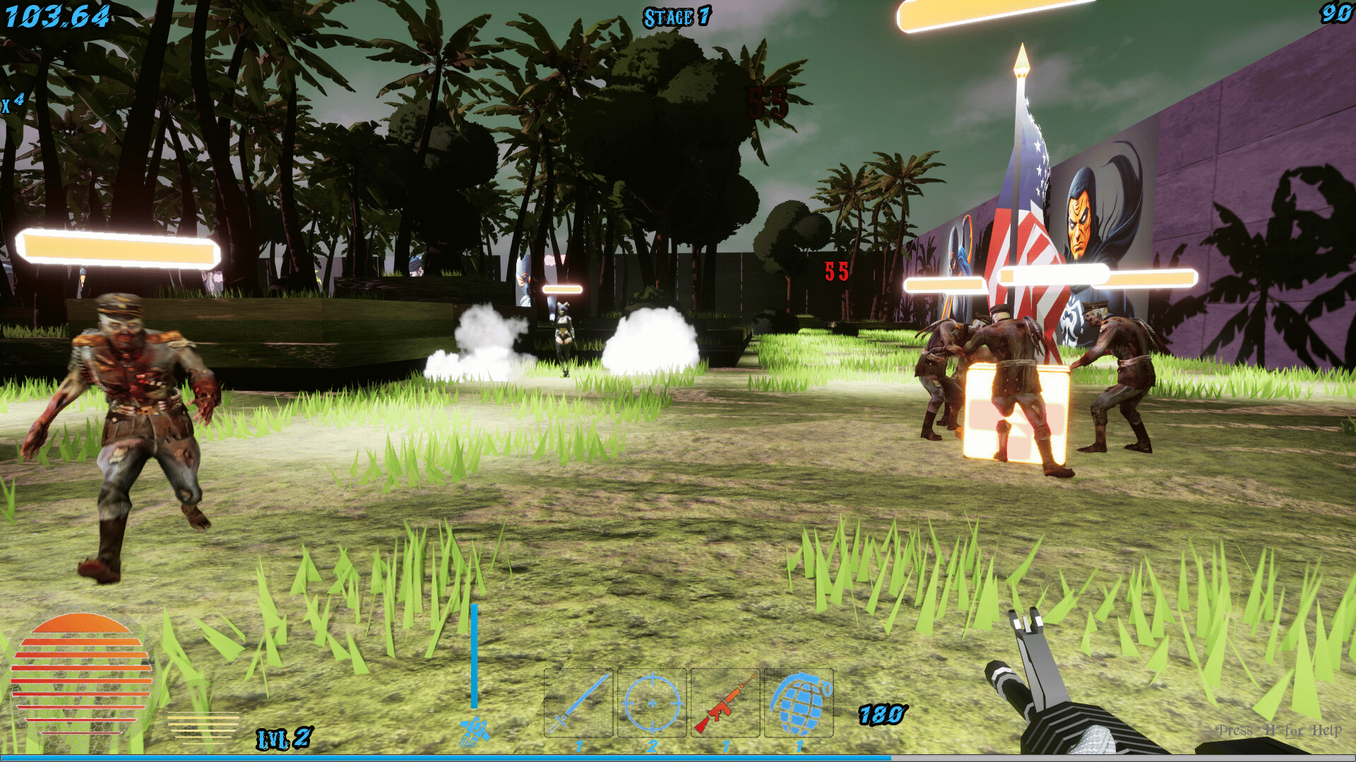 Save The Flag is an action-packed single-player shooter. Defend the American flag from zombies and monsters using a jetpack, four upgradeable weapons, and tactical perks. Fight through semi-random levels, earn points, and climb the highscore leaderboard!