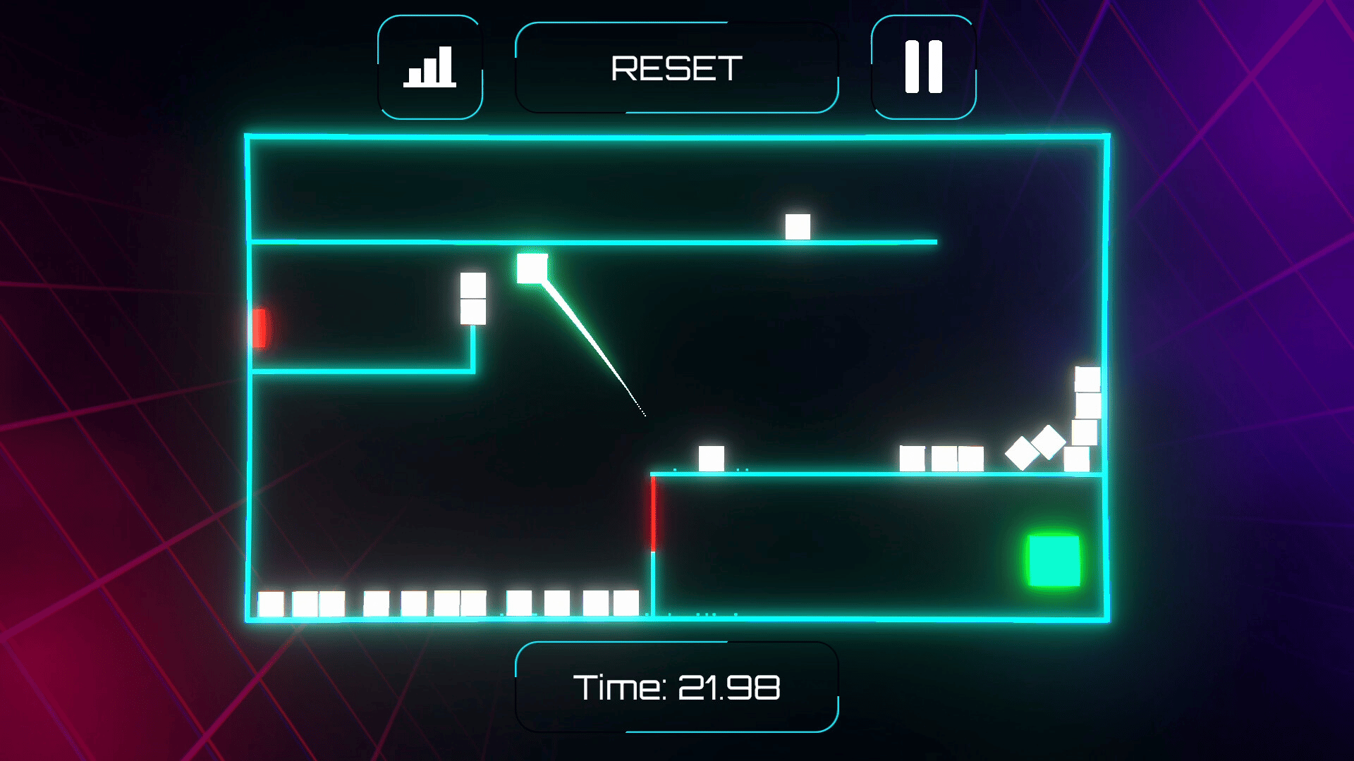 A neon-themed physics puzzle game where you flick a glowing square through challenging levels. Launch, bounce, and strategize your way through stylish mazes filled with momentum-based mechanics and time-based goals.