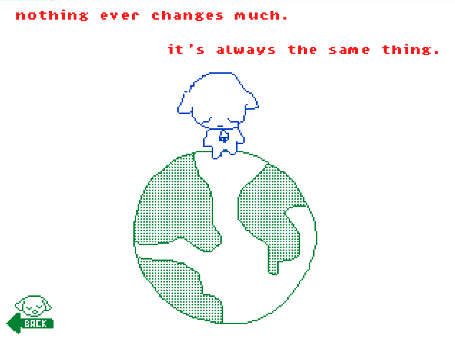 This was originally going to be a twine text game, but i realized i forgot most of what little html i knew so i made it in construct3 which in the end gave me more freedom to try fun stuff