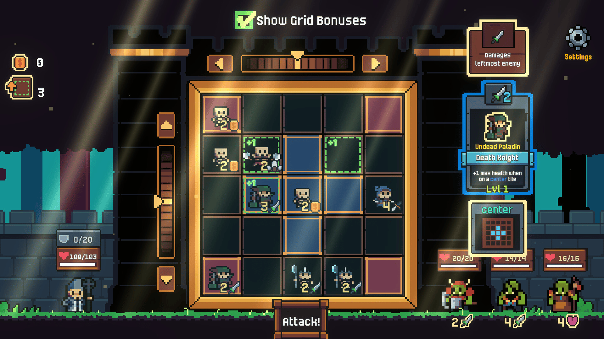 We Need An Army is a fantasy roguelike grid based deck builder about recruiting a powerful army! Recruit units, match patterns, and upgrade your grid in this tactical roguelike slots-based deckbuilder.