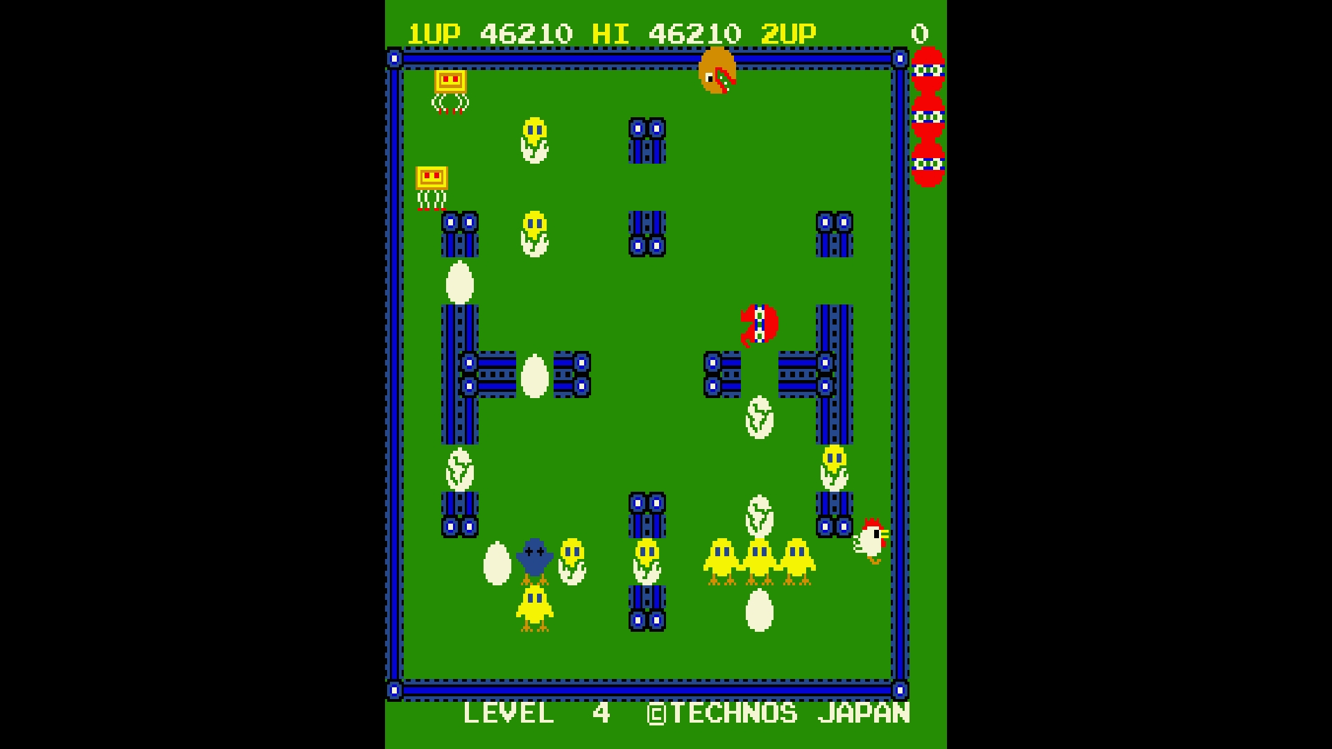 Kick, launch, and get chased! It's a scramble emergency!!! "SCRAMBLED EGG" is an action game released by Technos Japan in 1983. Kick the eggs to crack them open and hatch chicks. Then launch all the new chicks into the sky! Red chicks and chickens will help you take down enemies. Be sure to take good care of them!