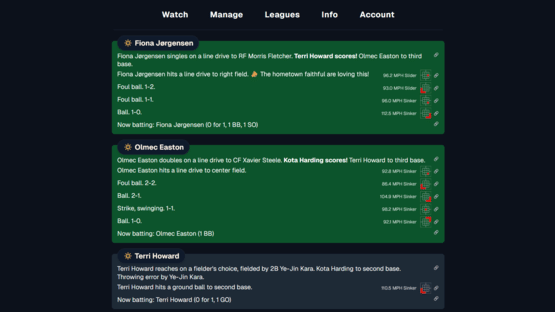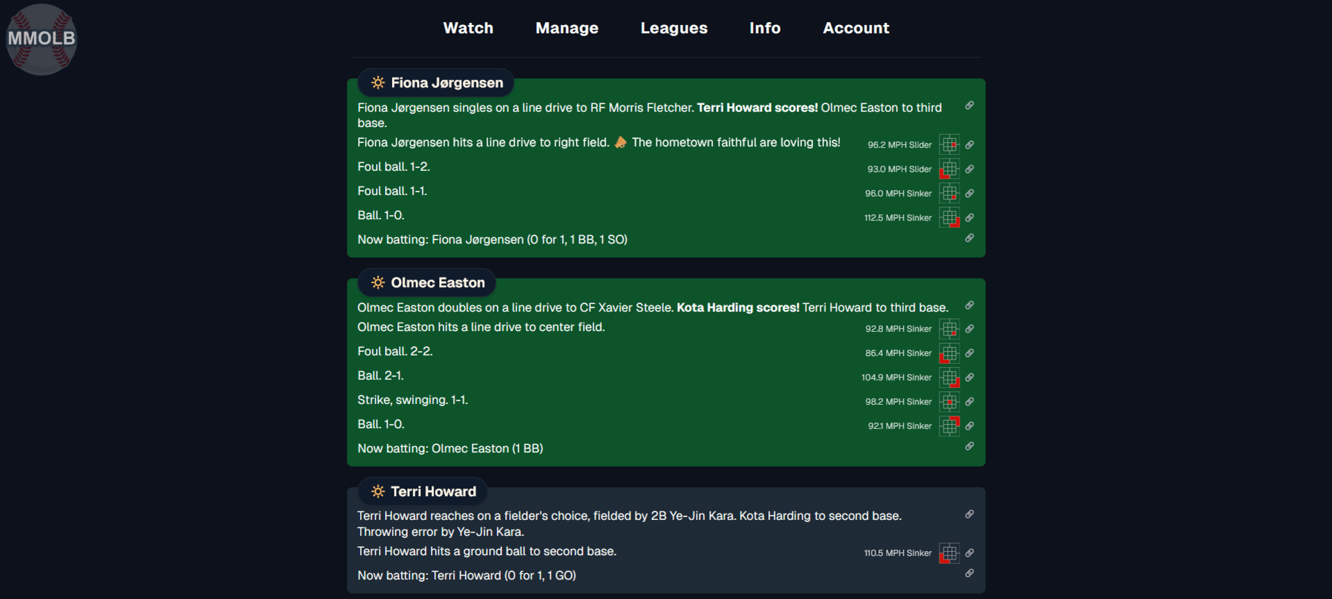 Massive Multiplayer Online League Baseball is a baseball simulation game where you can make a minor league baseball team to compete against other players. The best team each season gets a player called up to the major leagues!