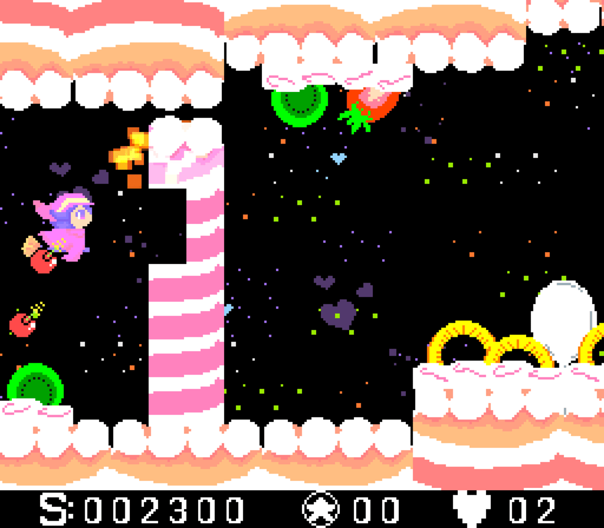 Momo is a bubbly witch who's travelling all around space to visit her emo girlfriend, Kiki. However, her task won't be so simple: Kiki's galaxy is all full of hazards that Momo must avoid.
