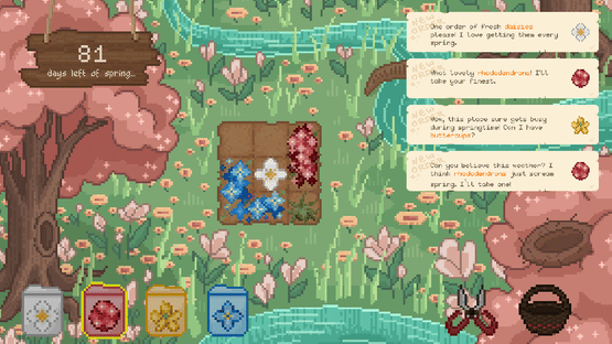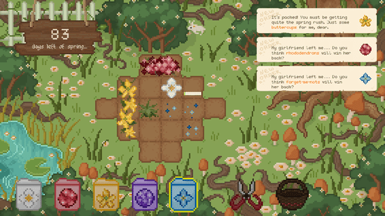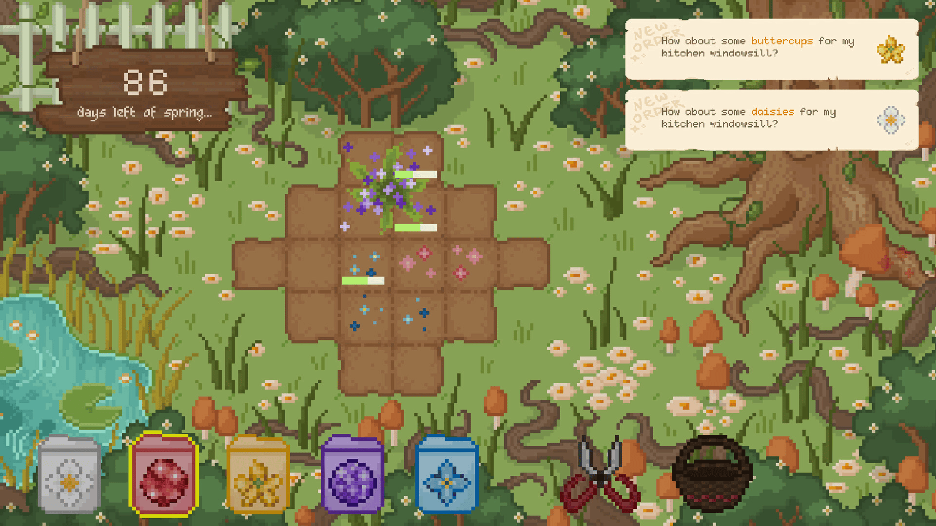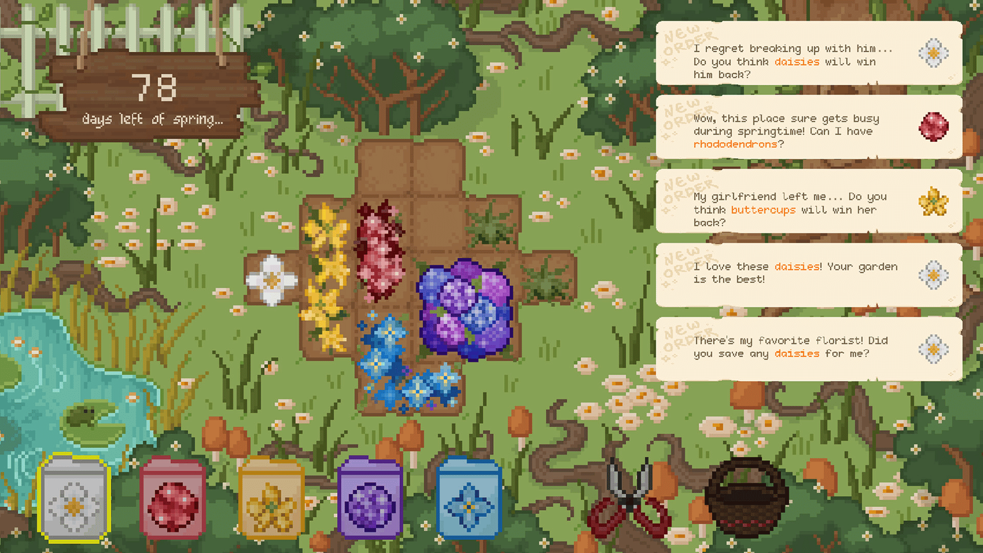 Floramino is a cozy roguelite puzzle game where you manage an ever-growing garden, hand out flowers to customers, and keep Springtime going.