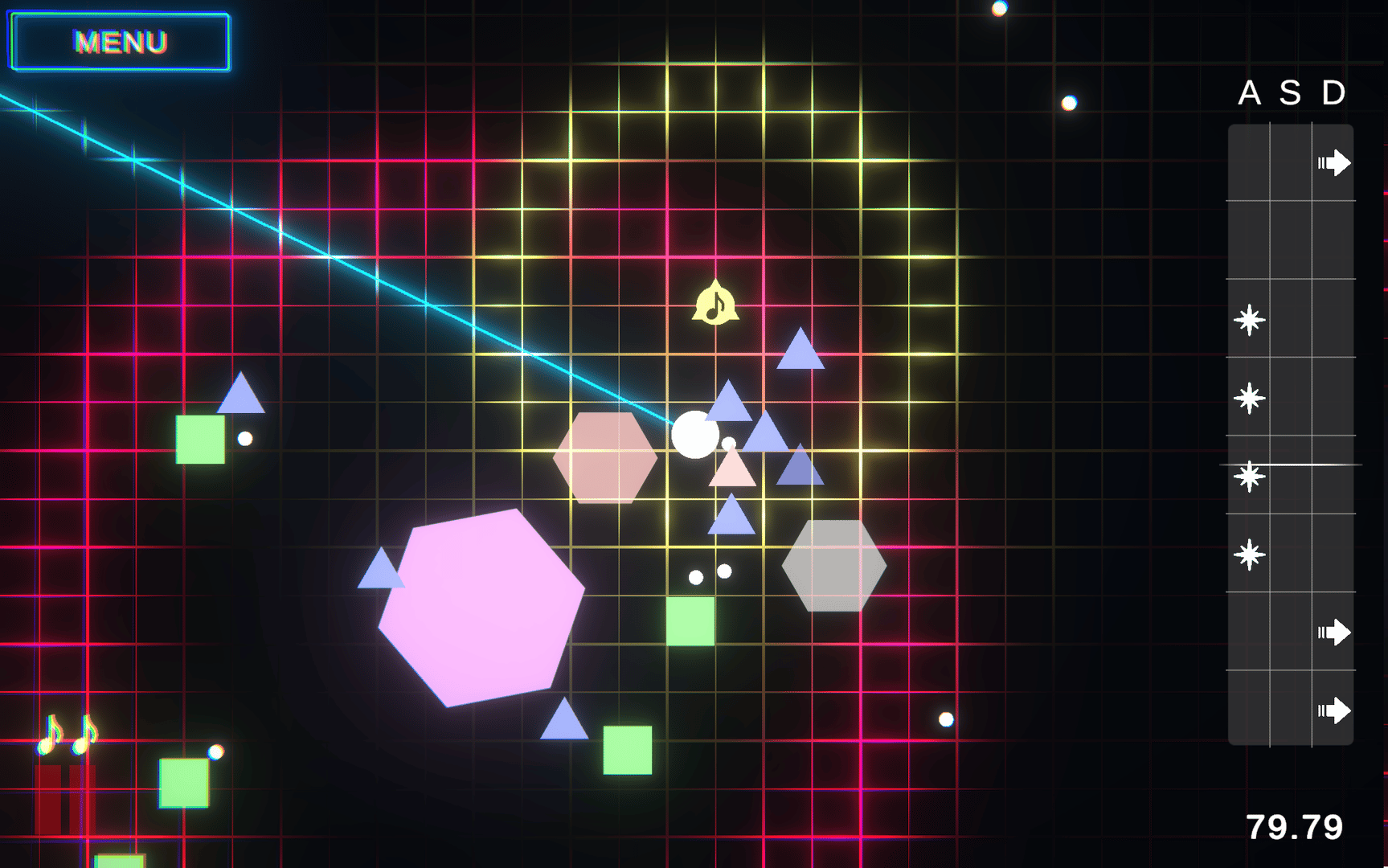 Defeat your geometric foes by placing attack, move, and shield elements in a rhythmic sequence to catchy music loops.