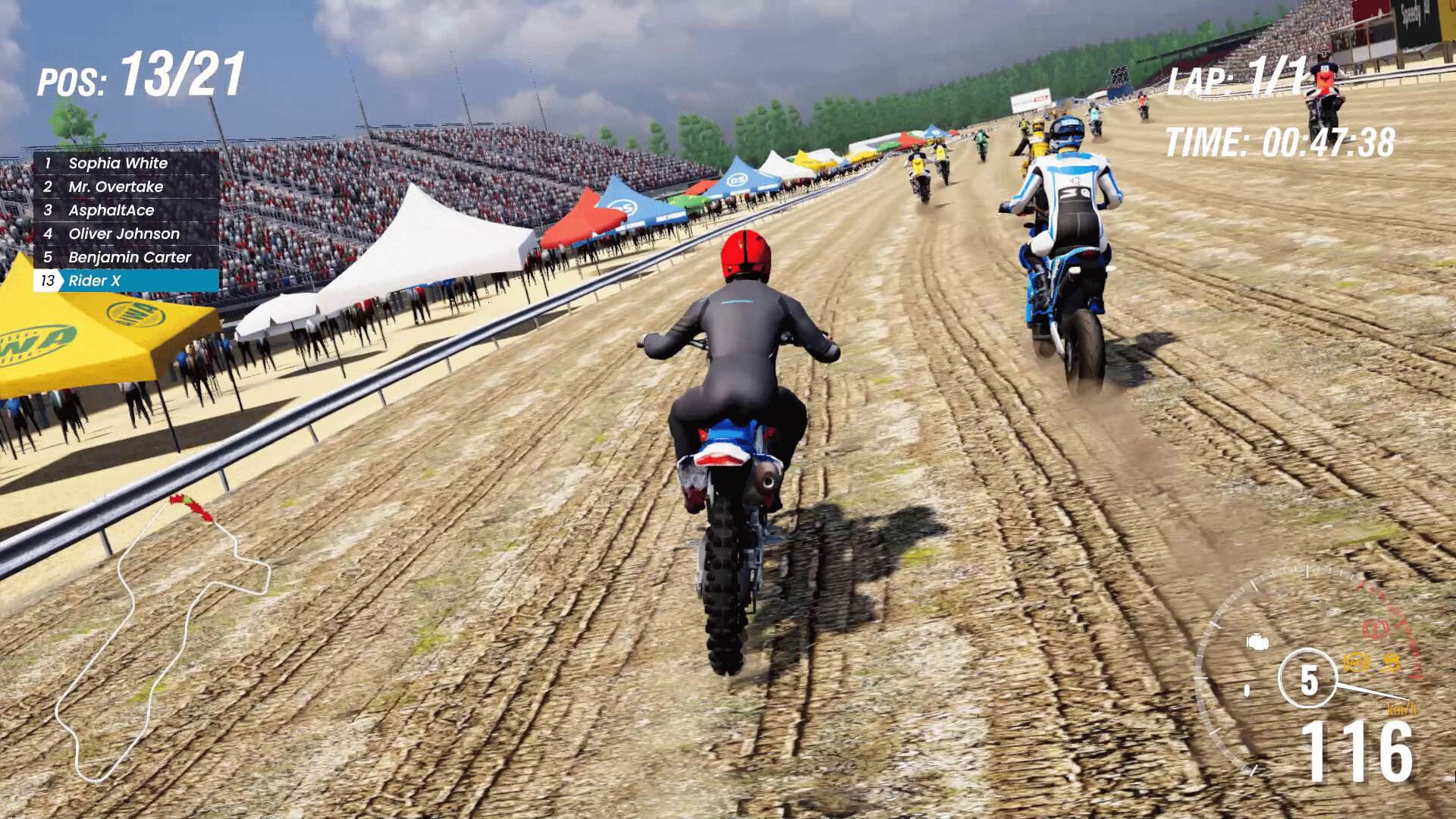 Experience the offroad racing with dirt bikes, tough AI rivals, and rugged circuits. Race through clear, sunny and rainy weather while tackling sharp track turns and jumps. Customize your rider outfits, adjust AI opponents, and push your limits on challenging dirt tracks to prove your racing skills.