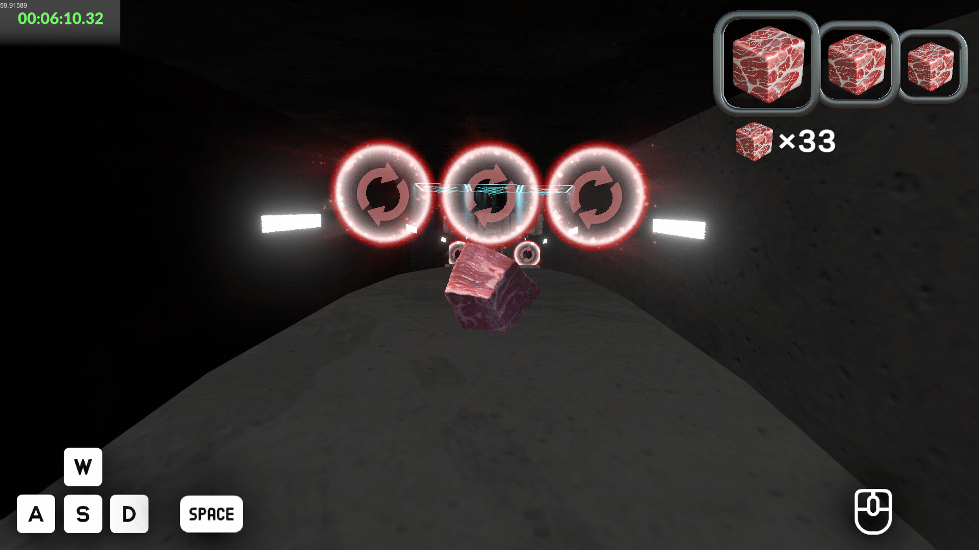 This is a game where you control a diced steak and aim for the goal located deep within each stage. But it's not just any diced steak. This steak has the power to create ghosts. These ghosts replicate your past actions and can be strategically used to overcome obstacles.