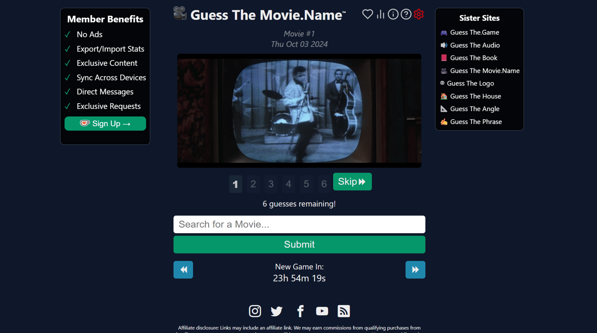 GuessTheMovie.Name is a daily puzzle game inspired by Wordle, Heardle & Framed.wtf. Every day a new movie is selected and 6 screenshots from the movie are presented to you one at a time.
