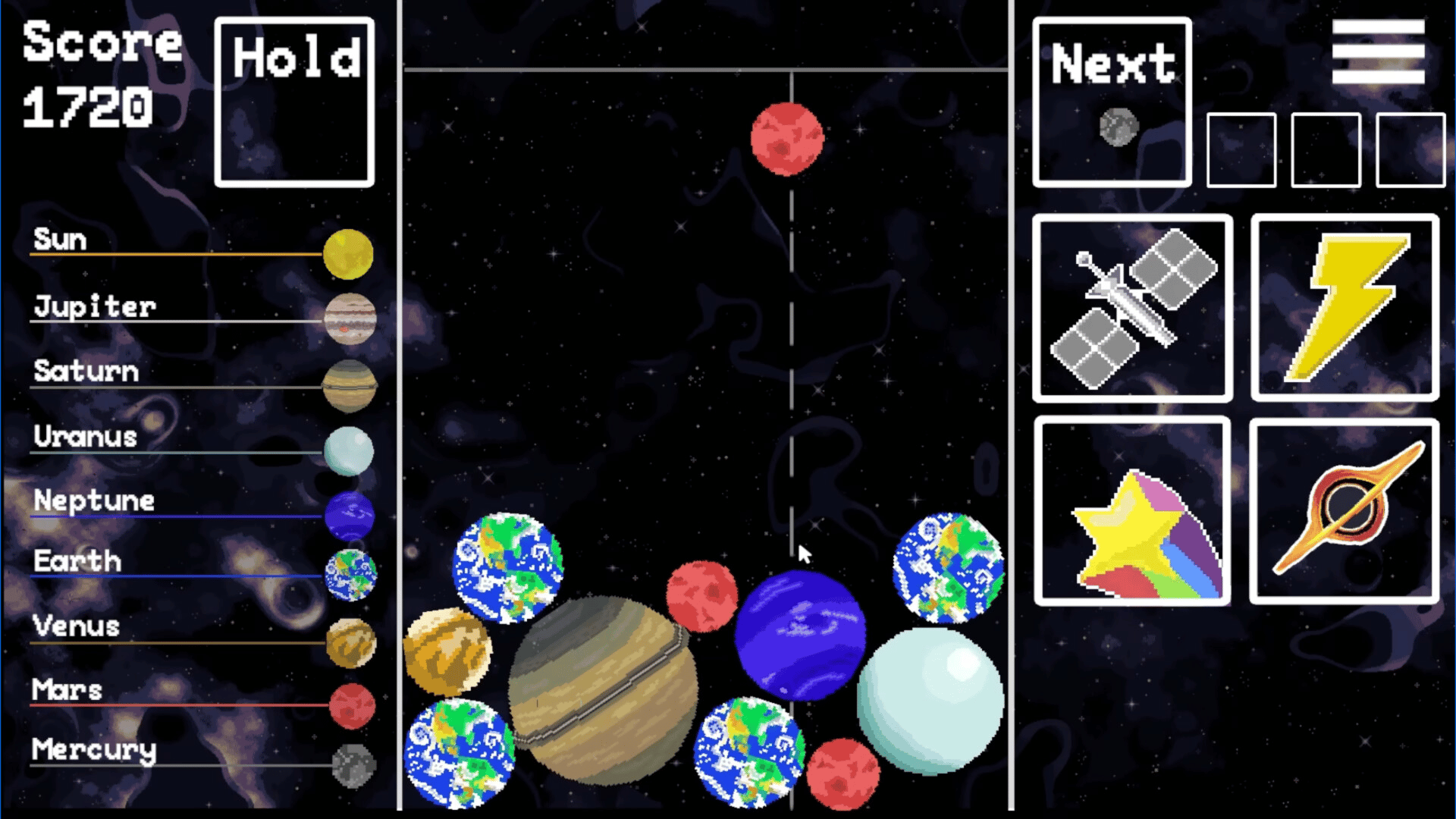 Drop and merge planets to create your ultimate galaxy in this space-themed puzzle game. Compete in the leaderboard with unique abilities and planets, and play your way with normal, vanilla and chaos modes. But always make sure your planets don't go over the limit.
