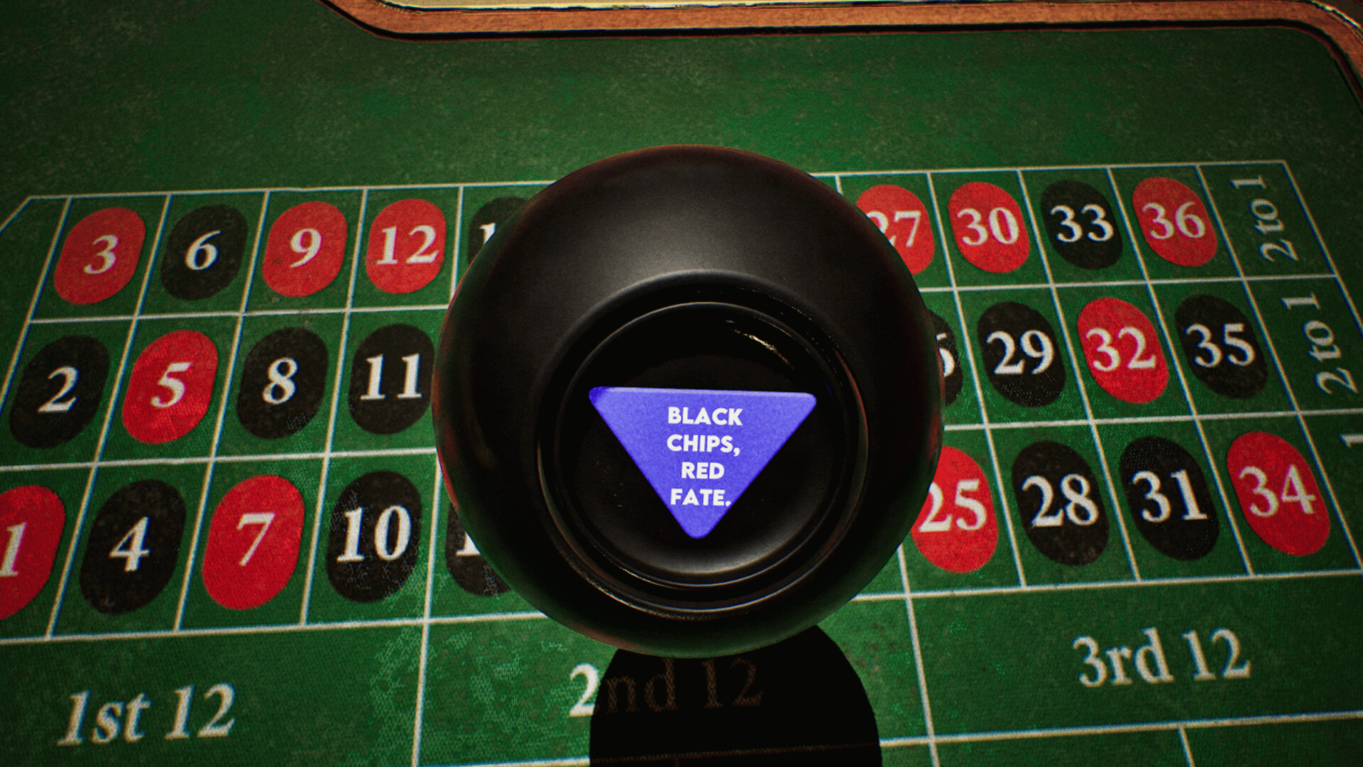 Descend into a haunted hotel casino where fate is twisted by a magical 8-ball. Shake it, interpret the signs, and place your bets as paranormal events guide your moves. Stack your chips, spin the roulette, and try to outwit the house in a game where intuition meets illusion.
