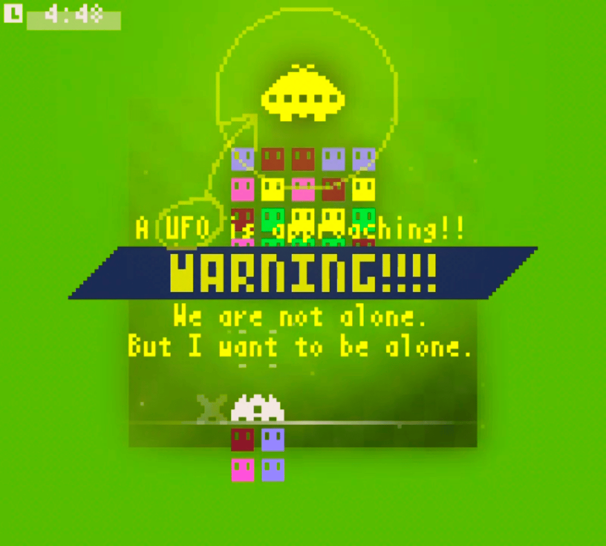 A short 4-match puzzle game. Press Z to push panels and line up four of the same color. Match three of the black enemy panels to power up your ship. Defeat the UFO that appears at the end to clear the stage. There are 5 stages in total.