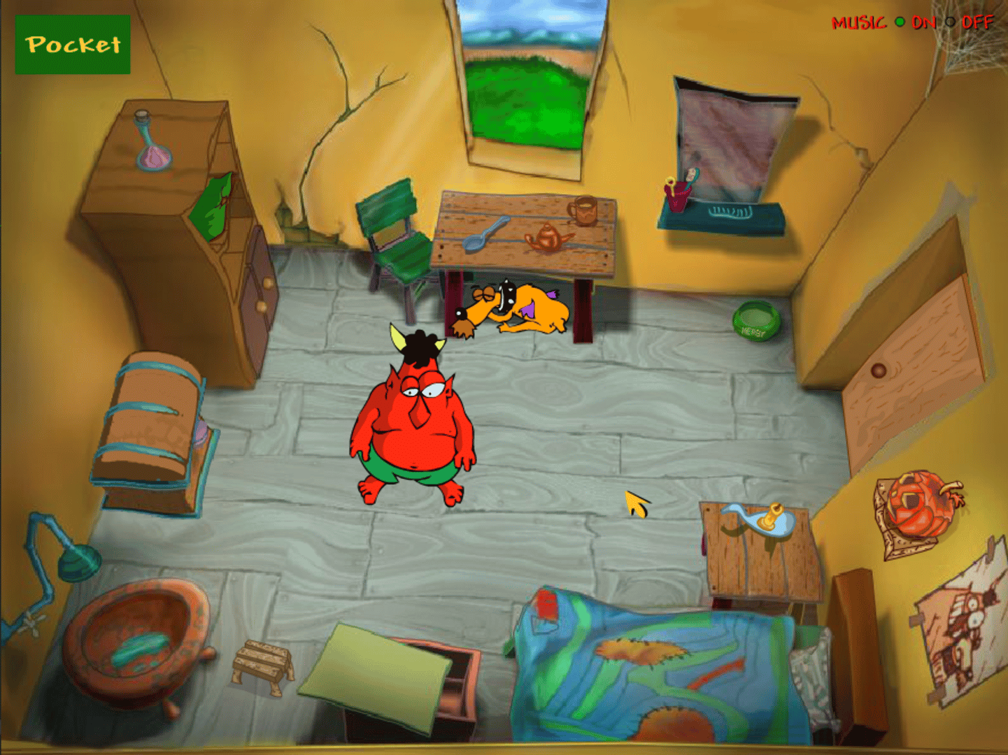 You play as Gorax, a mischievous red demon. The game begins with Gorax stranded on a cliff with no way down, and players must solve quirky puzzles, interact with strange objects, and use creative, physics-based solutions to progress. The hand-drawn, cartoonish art style and humorous scenarios make it a unique and playful