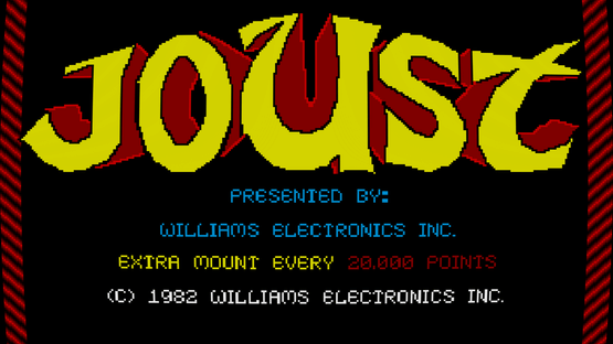 Joust is an arcade game developed by Williams Electronics and released in 1982. It is a platform game that features two-dimensional (2D) graphics. The player uses a button and joystick to control a knight riding a flying ostrich. The object is to progress through levels by defeating groups of enemy knights riding buzzards.