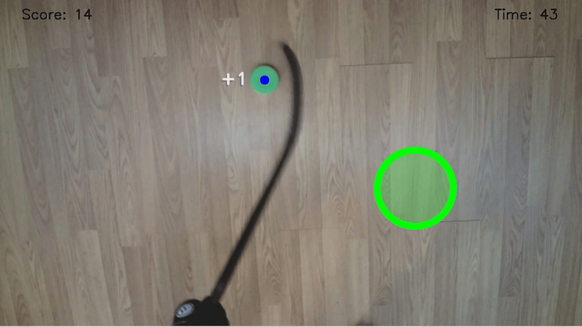Hotdangle is a fast-paced hockey training game where real stickhandling meets virtual challenges. Dangle a real puck / ball across the floor, hit interactive targets, score points, and improve your stickhandling skills -- all in a fun, augmented reality-style experience.