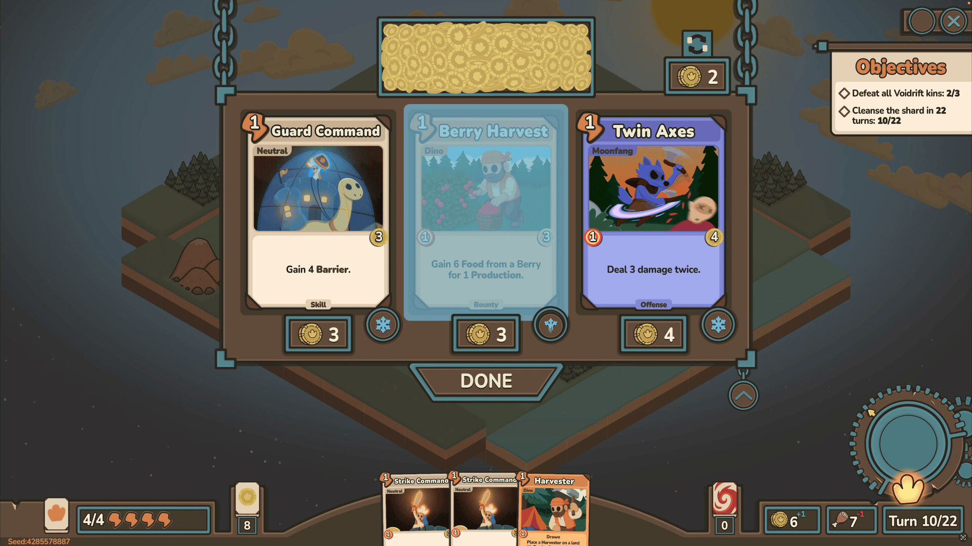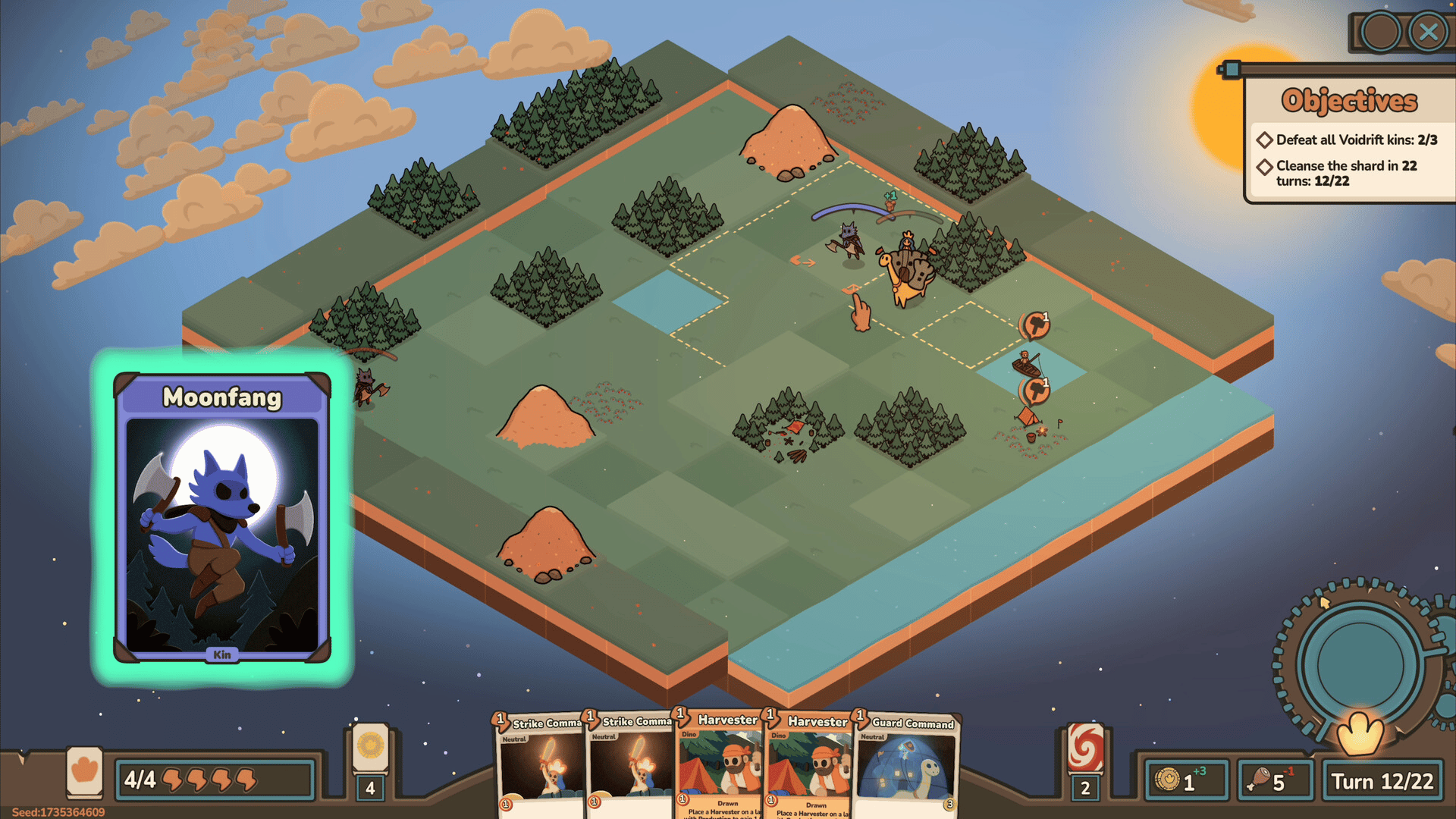 Command a castle-on-a-dino through a corrupted world. Rescue fallen allies, lead them in battle, and build your deck. Manage your economy to draw cards and confront the Voidrift in this tactical roguelike deckbuilder.
