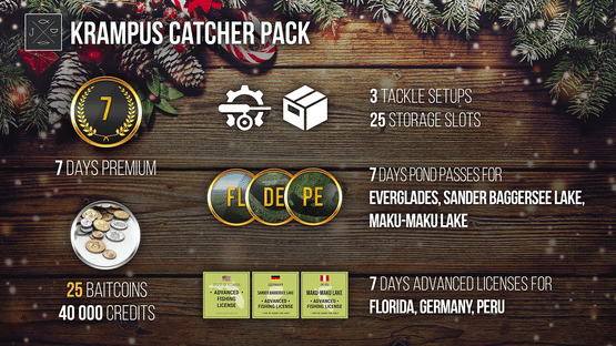 The right combination of rods and reels will help you to return the things stolen by the elderly villains back to Santa! The kit contains an excellent assortment of festive season feeders, delicious baits for sweet-toothed fish, a keepnet and, naturally, a celebratory firework!