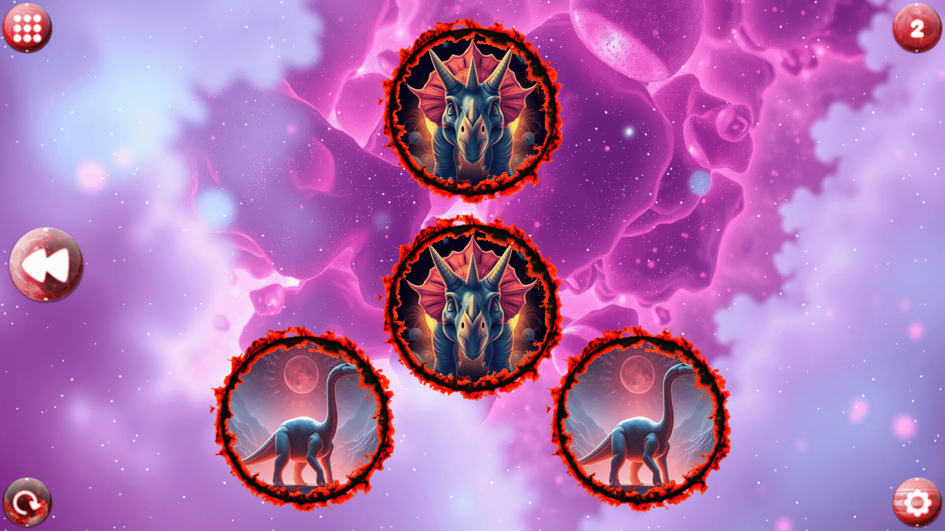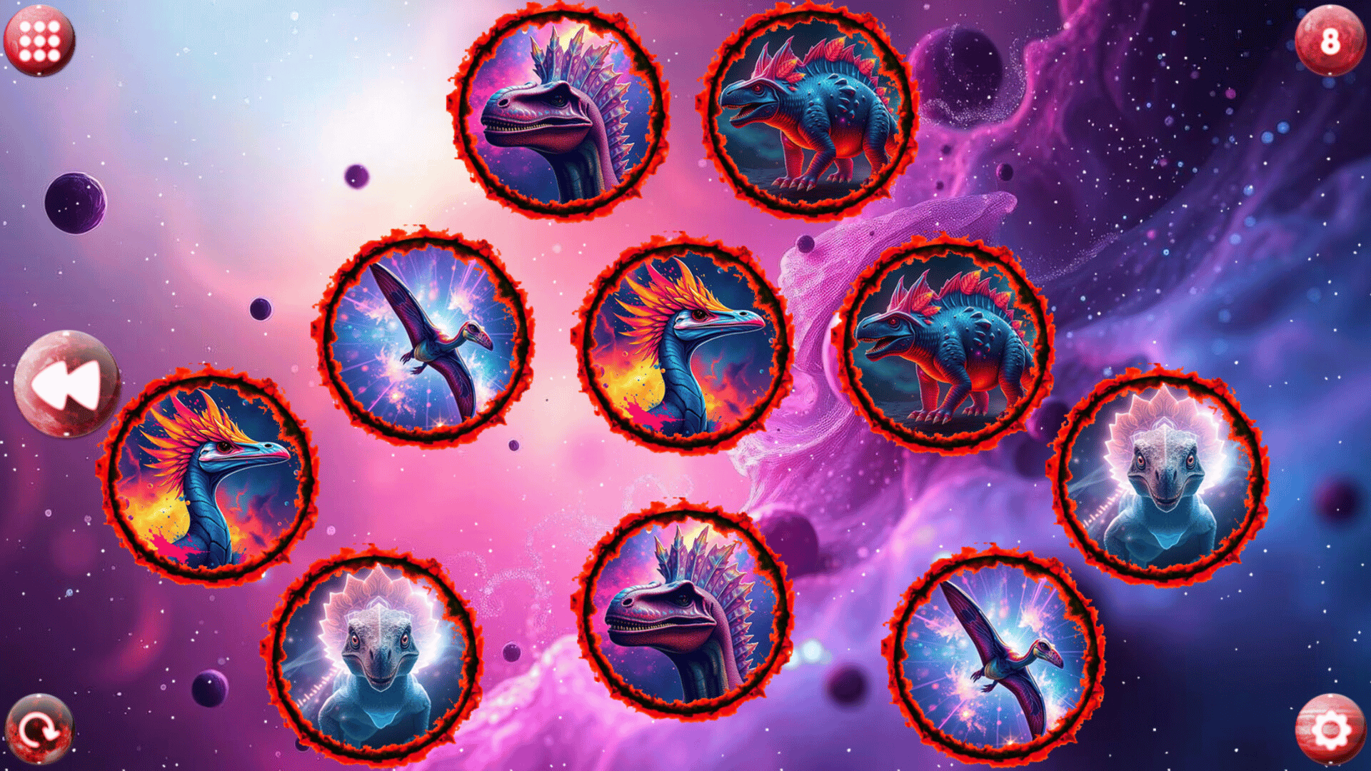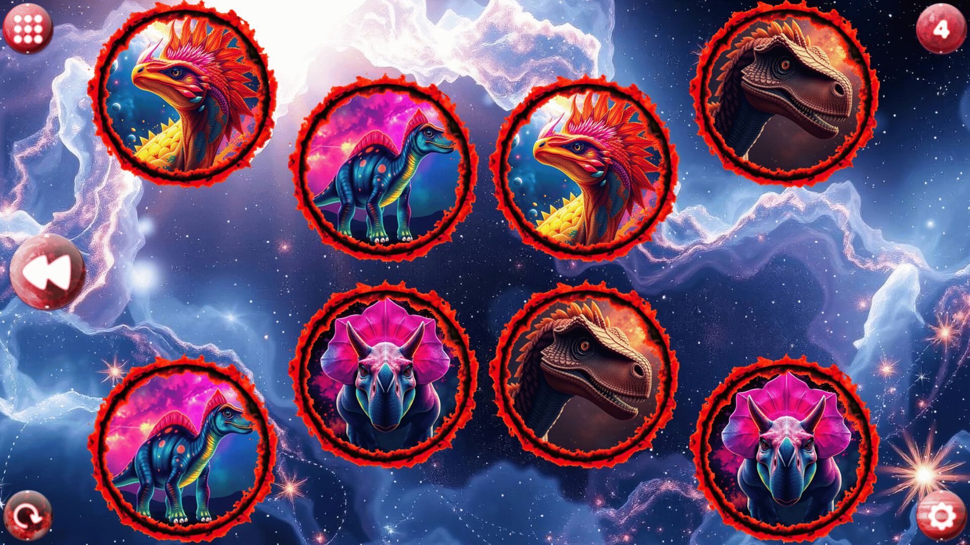 Cute, relaxing memory game where you match pairs of cool dinosaurs in space