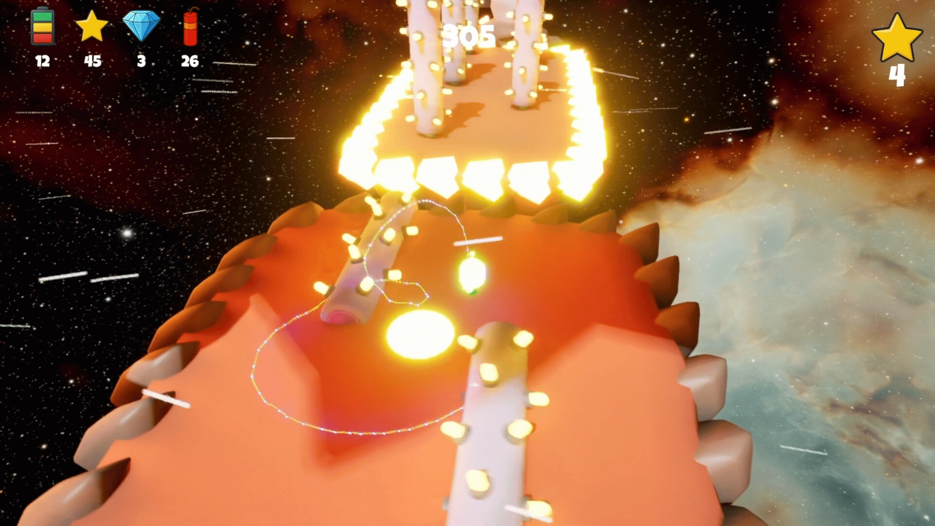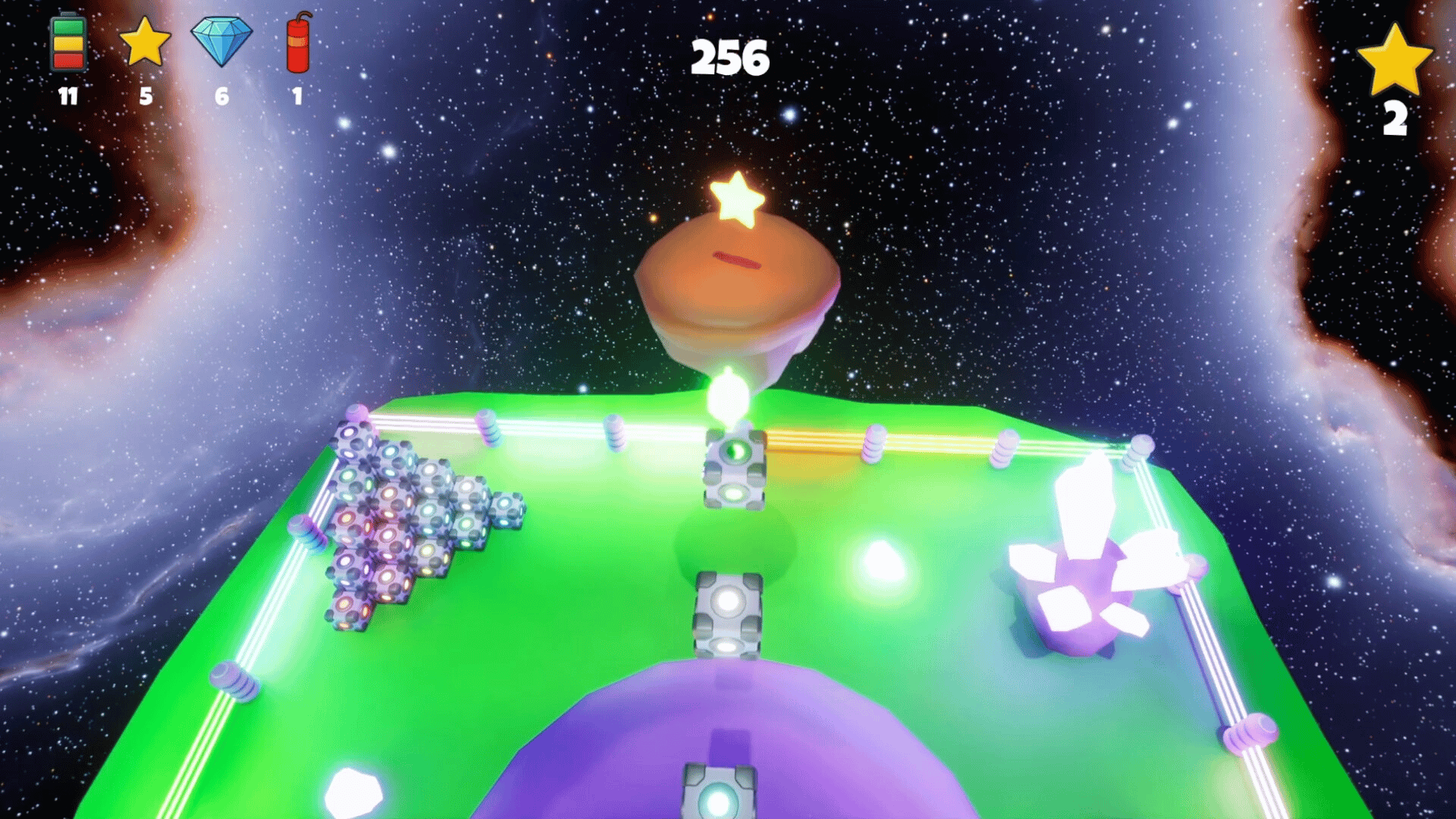 Ghlobot Shift is a charming space adventure where glowing little Ghlobots journey across 7 unique universes to reclaim their stolen stars and rescue their queen from the Demon King. Explore 35 handcrafted levels and face off against 7 epic bosses in glowing, otherworldly environments.