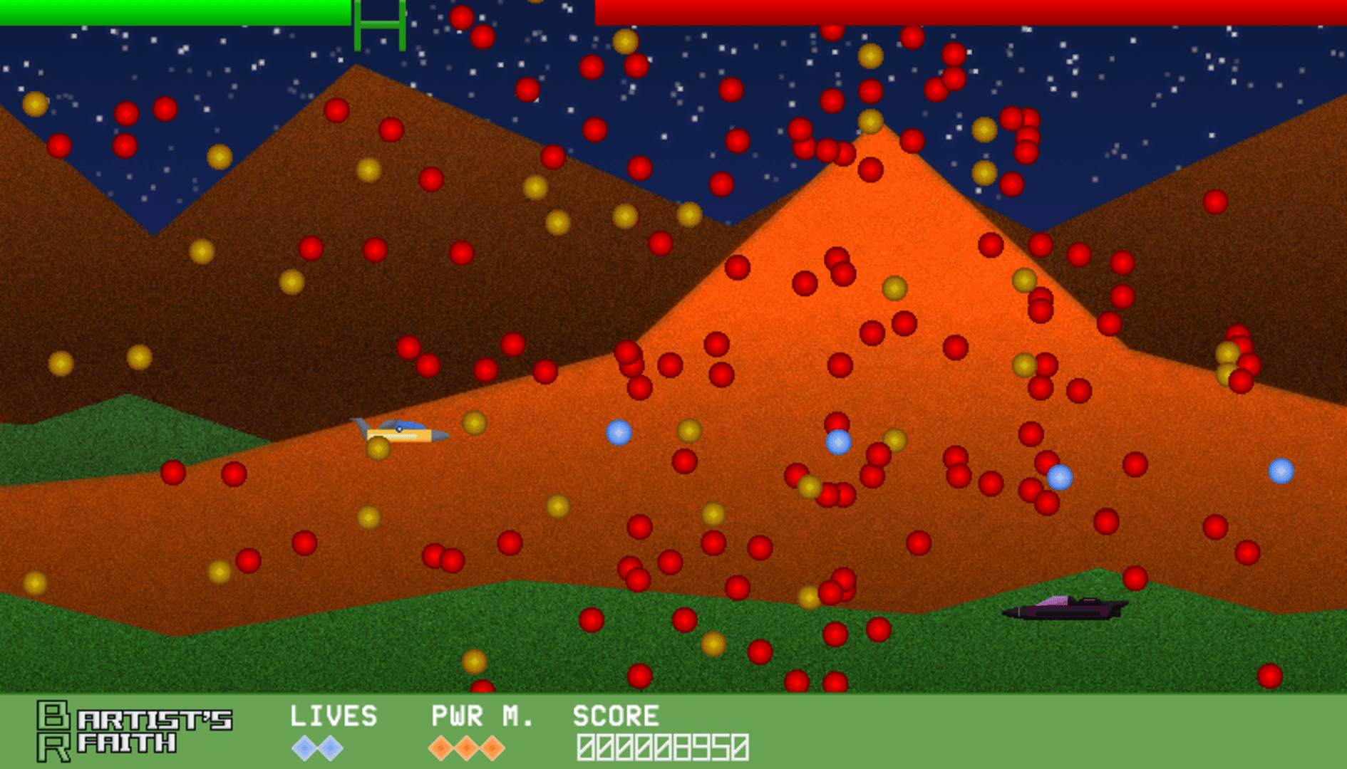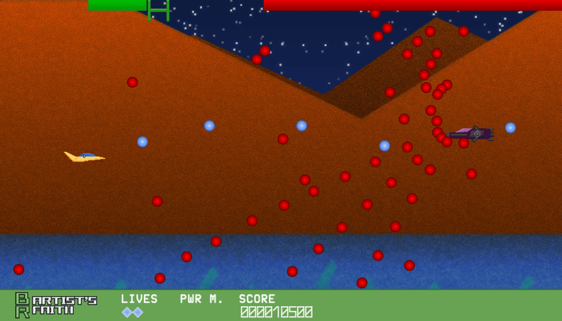 It's a horizontally scrolling boss rush shooter game that takes place on Light Island, where a member of the H.D.E. finds a bunch of enemy spacecraft in the Northern Mountains.