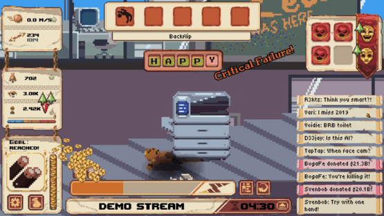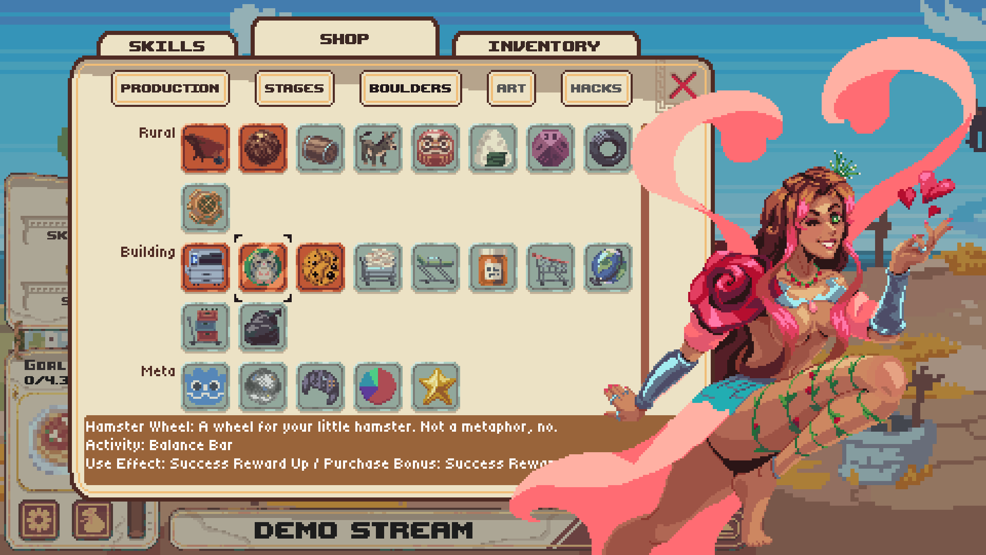 Sisyphus, king of Corinth, has tricked the Gods and Death. To punish him, the Gods condemned him to push a boulder uphill forever, only for it to roll back each time. But Sisyphus didn't give up. He decided to livestream it. Imagine Sisyphus Happy is a Steamer Sim, Clicker and QTE mix game about life, spectacle, and finding meaning in repetition. Roll your boulder, pull off stunts, and try to make the eternal grind worth living. Push the boulder. Do tricks. Go live. Progressing from Greek myth to the modern day, the story asks two simple questions: - Aren’t you a Sisyphus too? - Can you Imagine Sisyphus Happy?