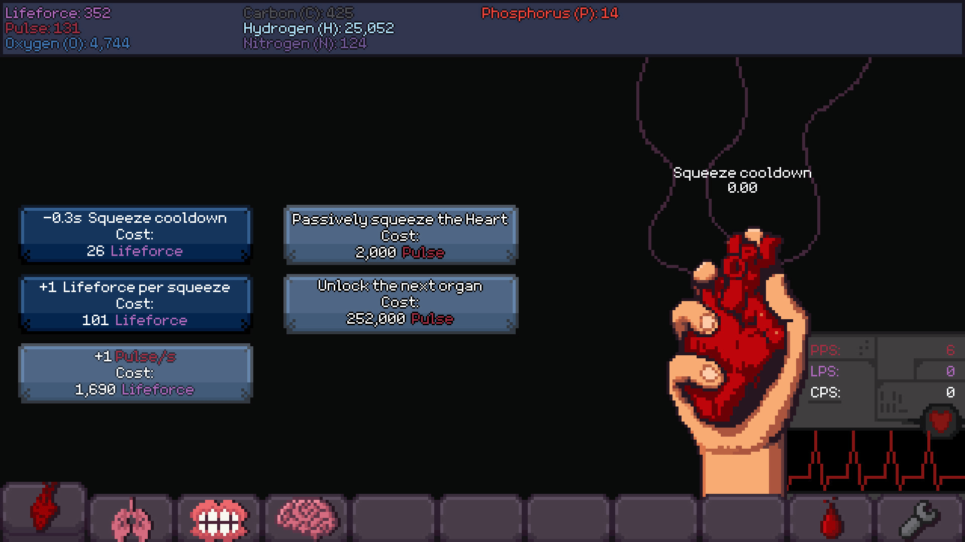 Squeeze the heart, gain elements and eventually synthesize your own blood. In this incremental game, every organ (not only your heart) matters. Use their synergies to achieve your ultimate bloody goal.