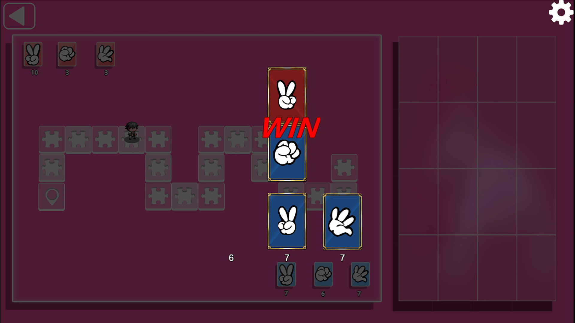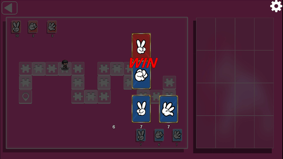 This is a puzzle game that incorporates guessing to get characters and interact with the characters. According to the remaining number of cards in the upper left corner, guess the card that your opponent will play and beat them to get the character tokens. Once all the tokens are obtained, the character will be unlocked. The difficulty will increase as the game progresses.