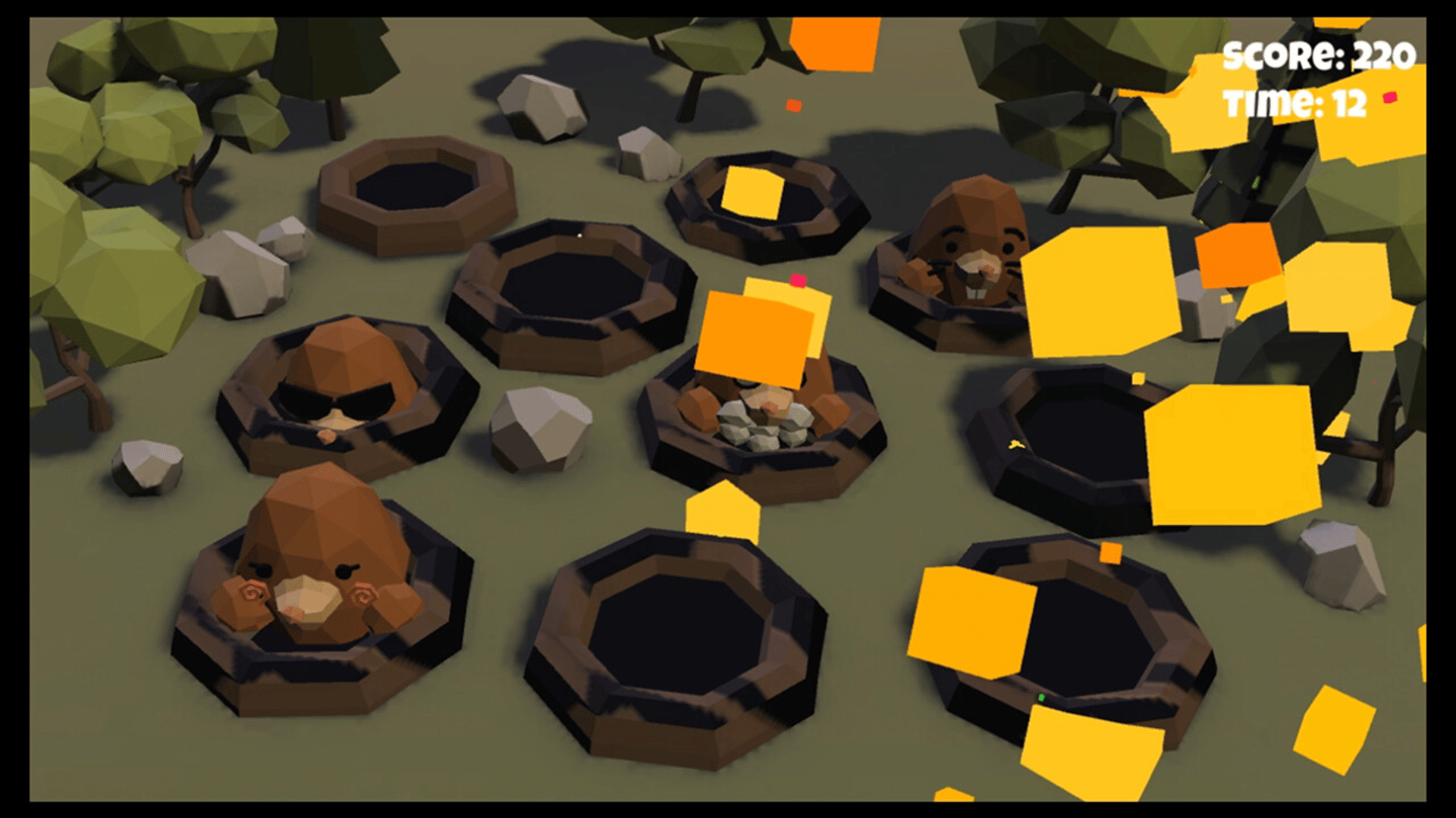 3D Whac-A-Mole is a very interesting game of groundhog. The rules of the game are very simple. It is a success to fight all the gophers that come out.
