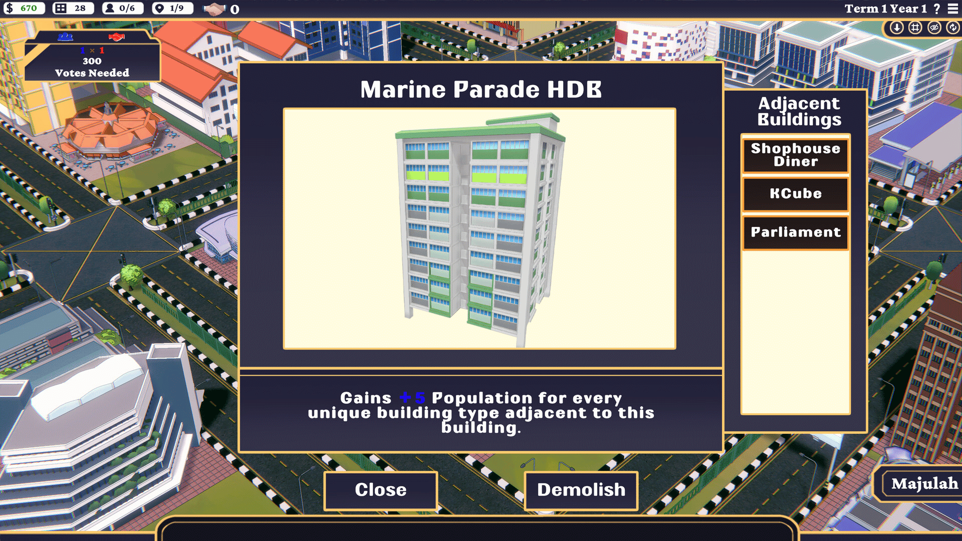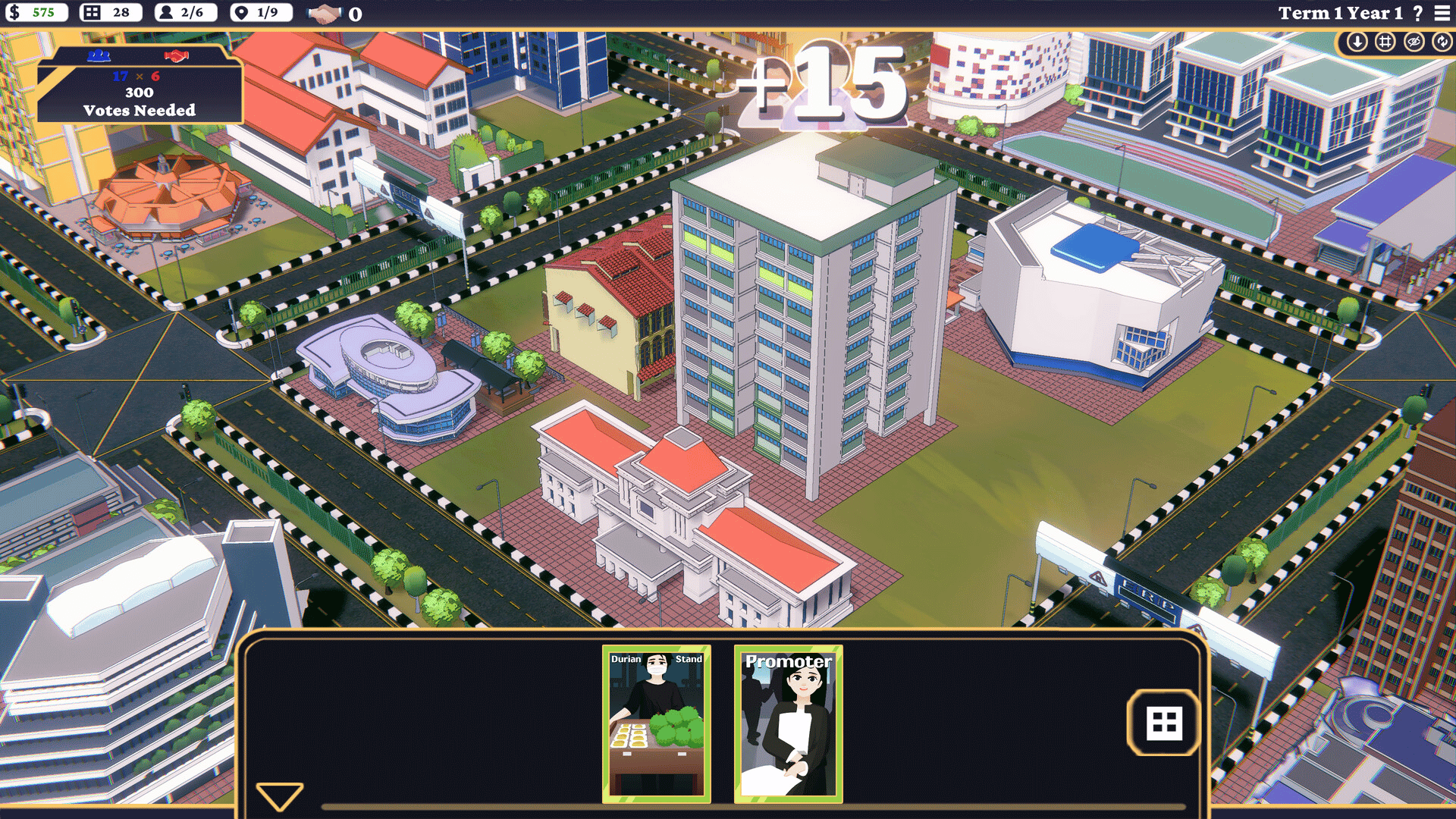 Build and govern a thriving Singapore in this city builder! Plan your city with tactical building placements, Recruit a powerful Cabinet, and secure Building Blueprints during heated parliament sessions. Rally citizen support to ensure re-election and shape your nation's future one term at a time!