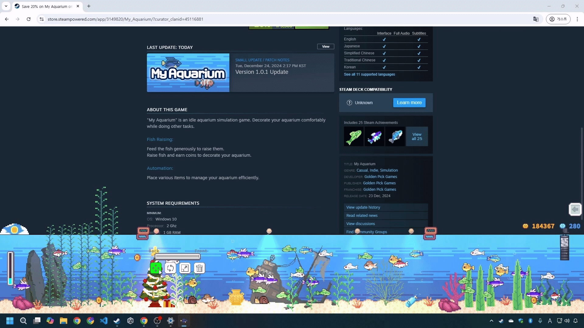 "My Aquarium" runs at the bottom of the screen while you are doing other things, making it an idle aquarium simulator you can enjoy comfortably.