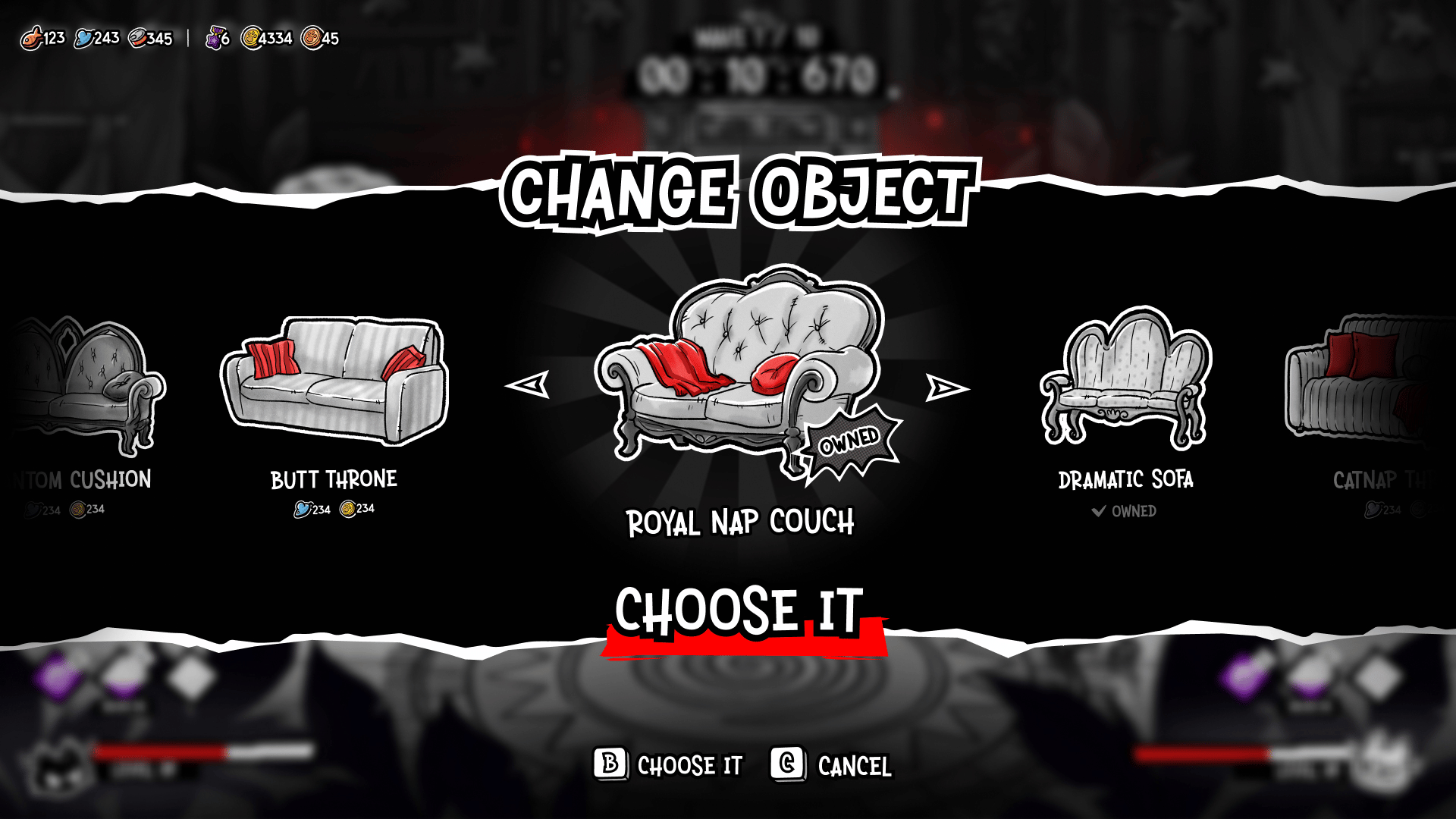 Play as your cat(s) in a co-op roguelike of night prowls, day naps, and endless mischief! Claw at haunted appliances, fight chthonic horrors, and upgrade your cozy mansion! Customize your meow, accessories, and fur; Pet your human for perks!