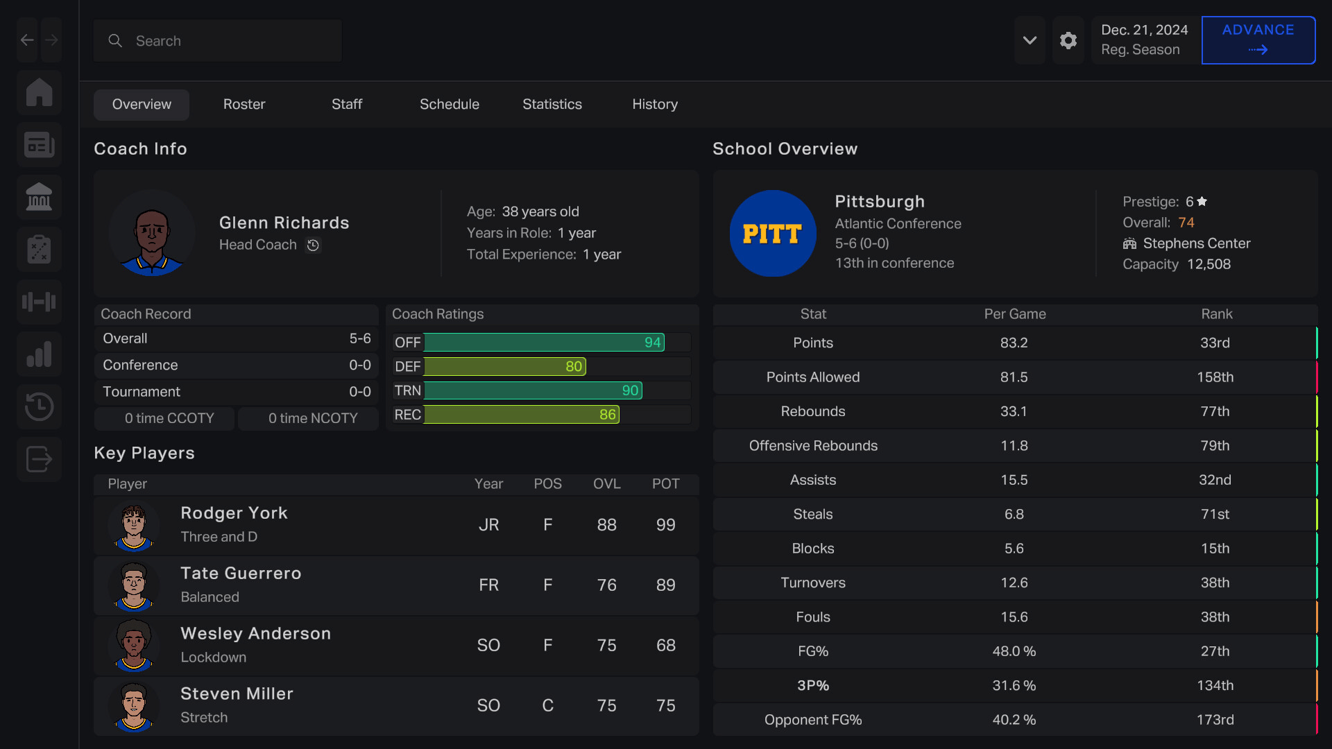 Experience the ultimate college basketball management game. Take charge as a coach, recruit top talent, develop your team, and compete for national championships. Manage one of 192 teams (or up to 384 when using custom leagues), making strategic decisions to build your basketball dynasty