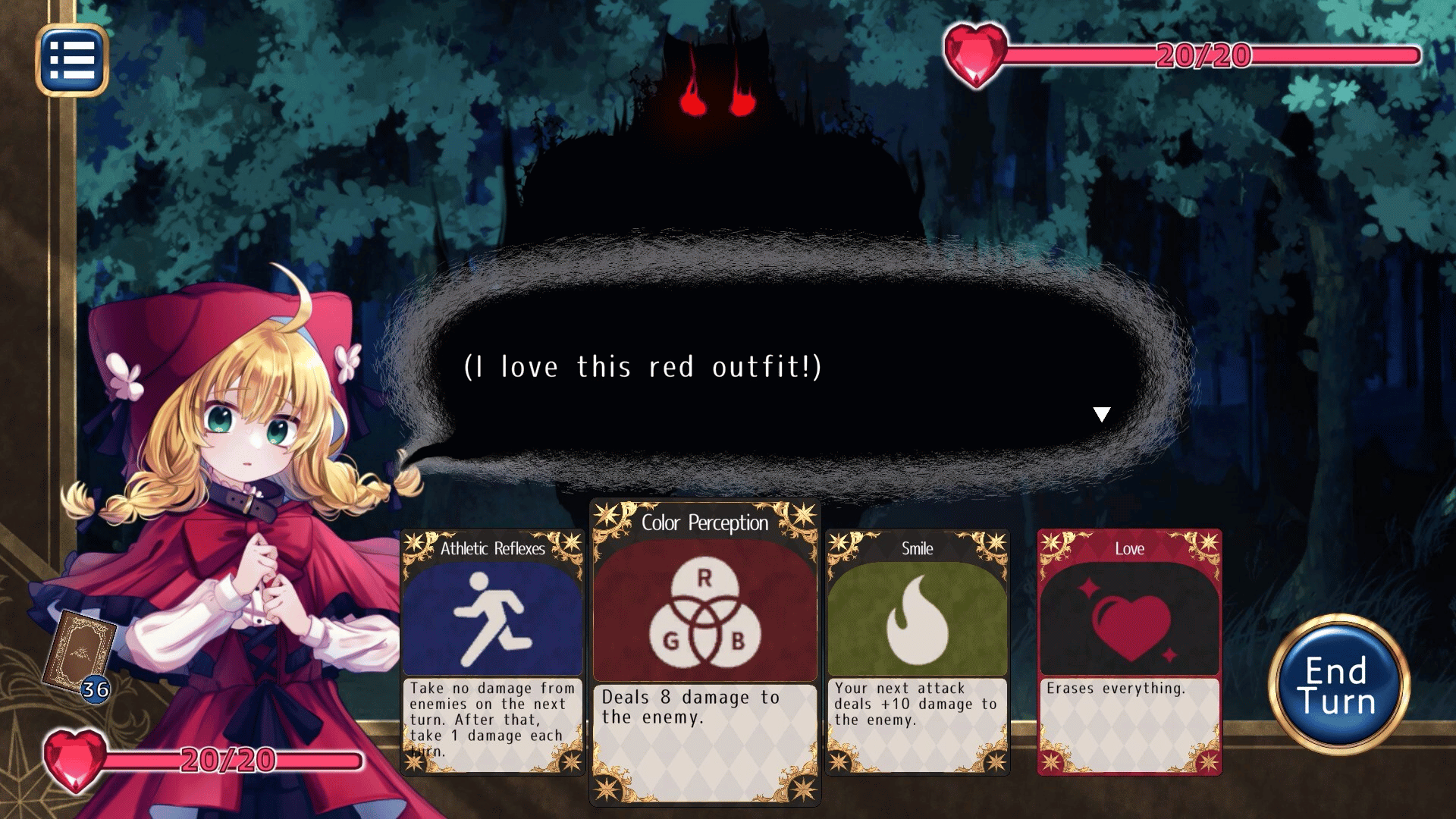 “Compensated Girl” is a deck-building roguelike card battle adventure game.It aims to defeat monsters in card battles and try to escape from a nightmare world.However, the deck you use is the girl herself.Using cards affects the girl directly, changing elements like the UI, story, and more.