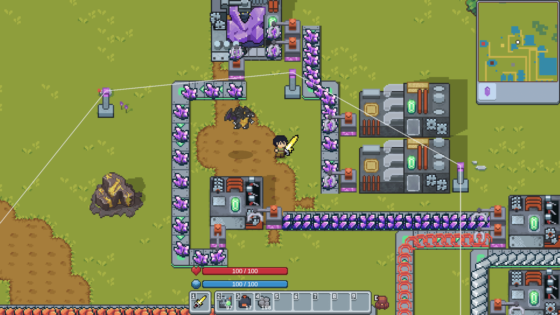 Collect resources, build machines, and automate everything. Explore magical lands, face hostile creatures, and turn their loot into part of your factory system. This is your Manaftory — a magical factory powered by mana.