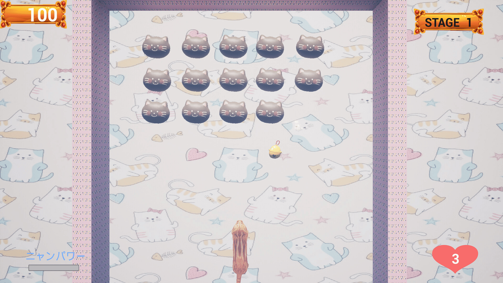 Old-fashioned block crumbling with a cat motif. Simple controls allow a wide range of players from small children to adults! It also comes with an ending! The volume has been increased to play up to a total of 10 stages! Can you win the challenge from the black cat?