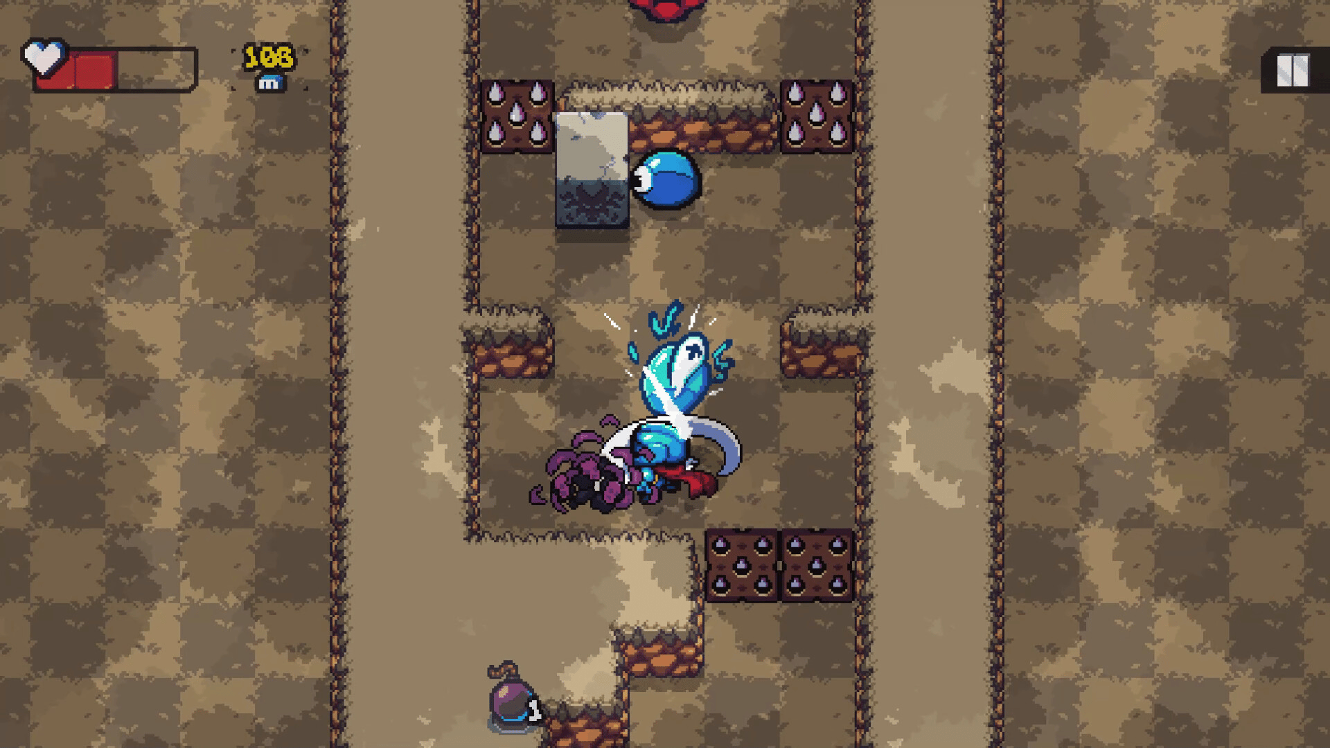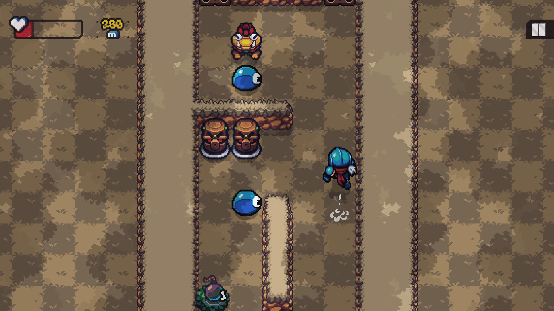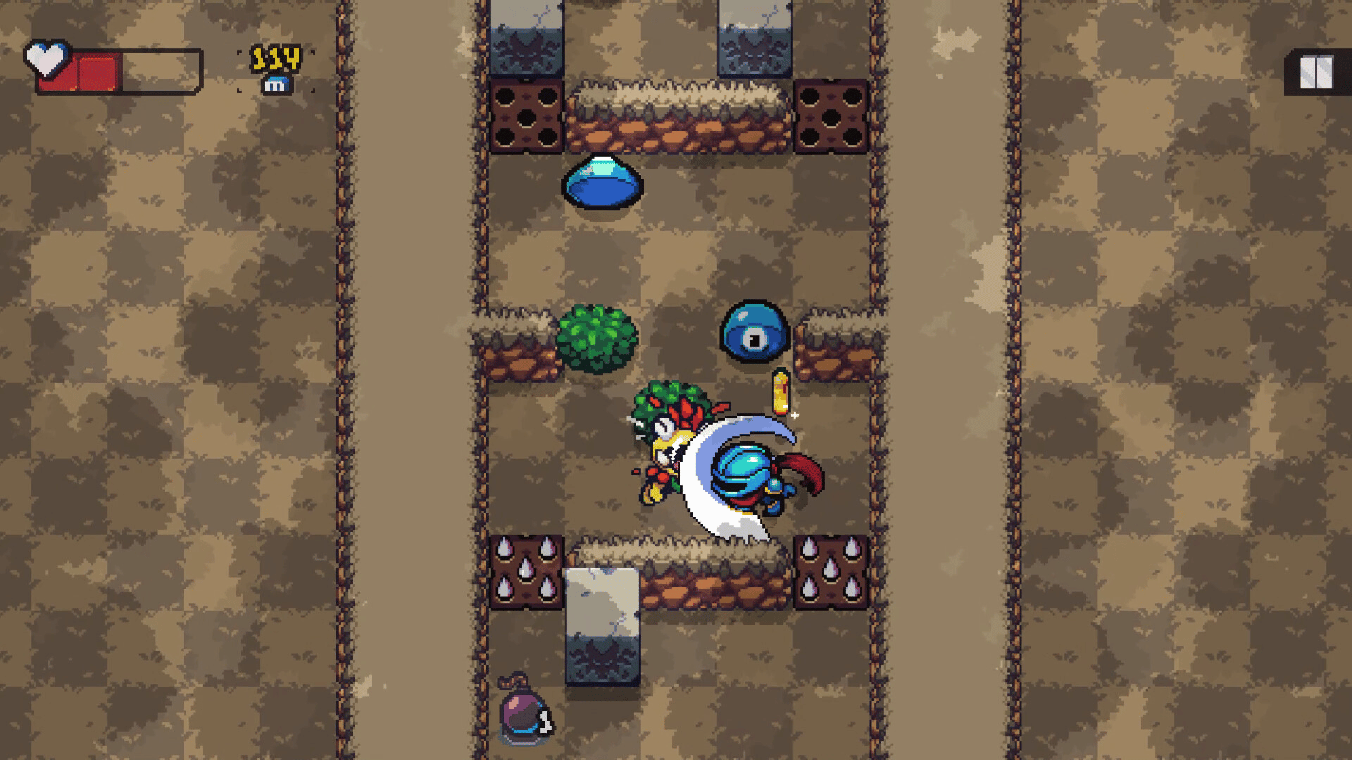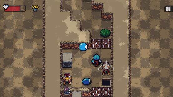 Sir Stepsalot is trapped in the Cursed Forest! Luckily, he has his trusty sword and bomb pouch to fend off dangerous monsters. He will have to travel deeper into the forest fighting monsters and avoiding traps. Our knight can't stay in place for too long though. There's a dark curse chasing him!