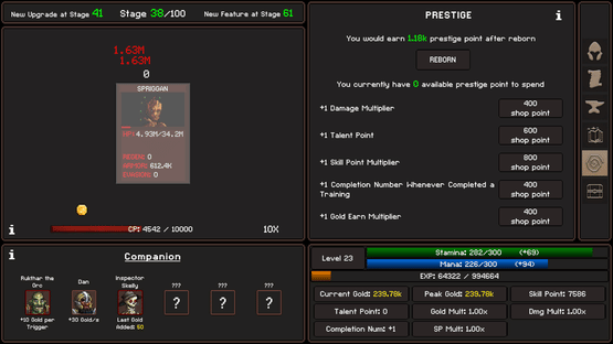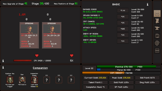 Stage Break Idle is a relaxing incremental game where you defeat enemies at each stage. As you progress, you'll discover meaningful upgrades and unlock engaging new features. Unlock powerful companions to aid you in battle, and continue advancing until you conquer the final stage.