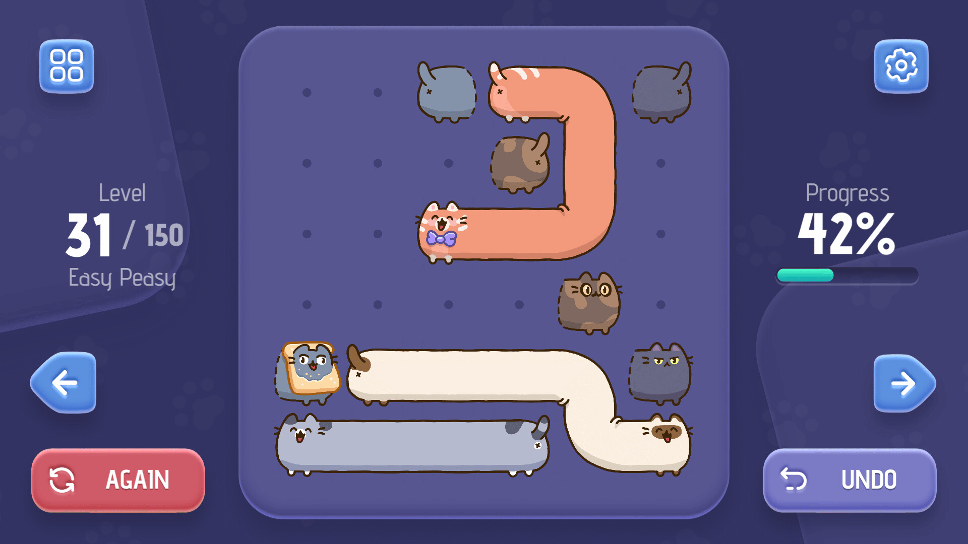 A relaxing puzzle game about adorable cats! Toffee Cats is a cute and casual game for the whole family! Different cats, charming graphics, and a cozy atmosphere will bring tons of joy. Perfect for relaxing and having fun.