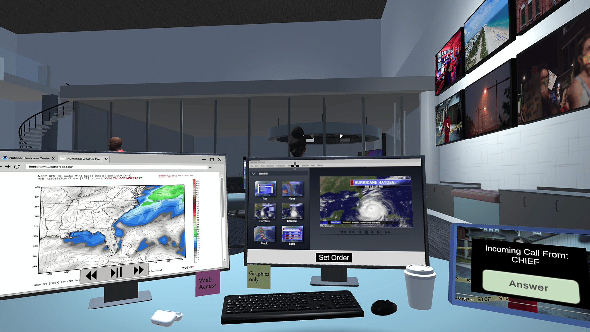 Hurricane Heroes is a 3-act interactive narrative experience that places players in the shoes of three critical roles as a storm approaches and impacts the coast of Florida.