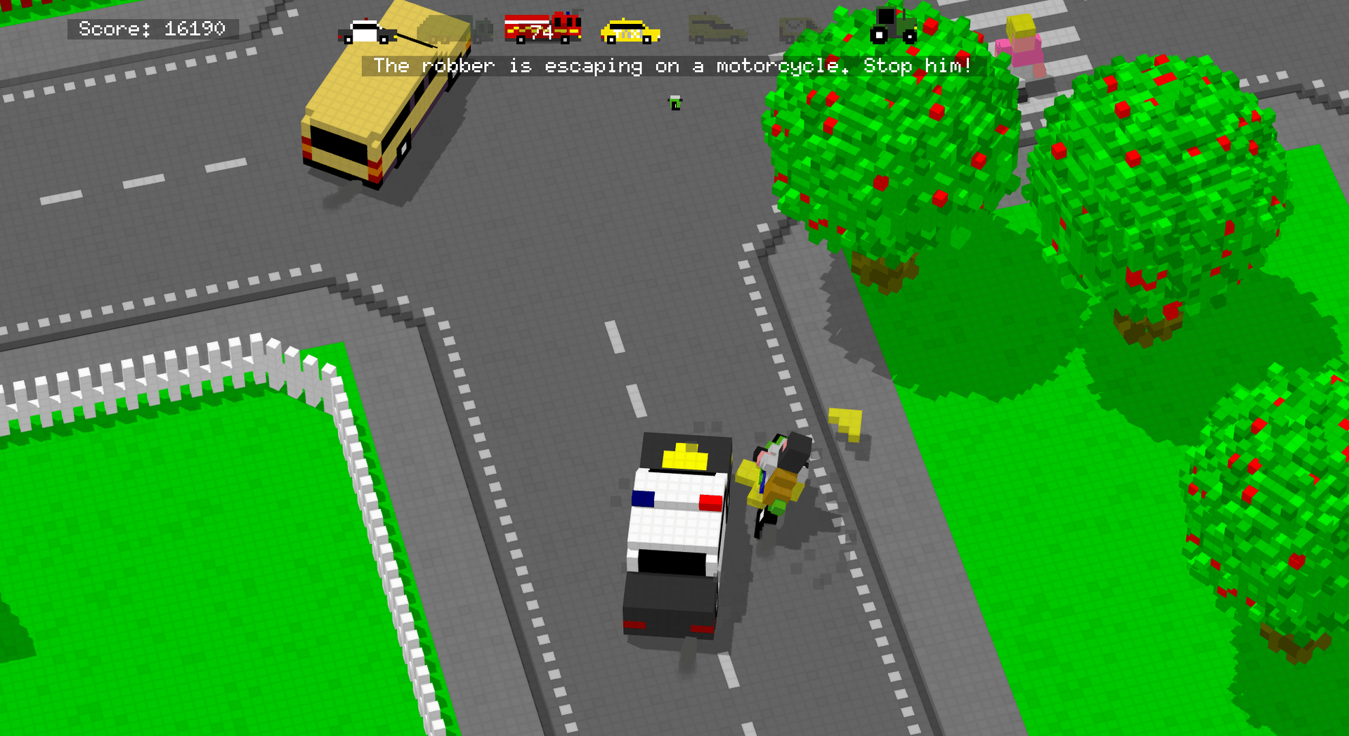 A kid decides to help its town. Complete mission for different professions or take a break and race through the roads and streets of the town on a motorcycle, kickbike or skateboard, play some football or ride a sheep! City Block is a town simulation game focused on driving in a big pixel car playmat with gameplay similar to the early auto theft games.