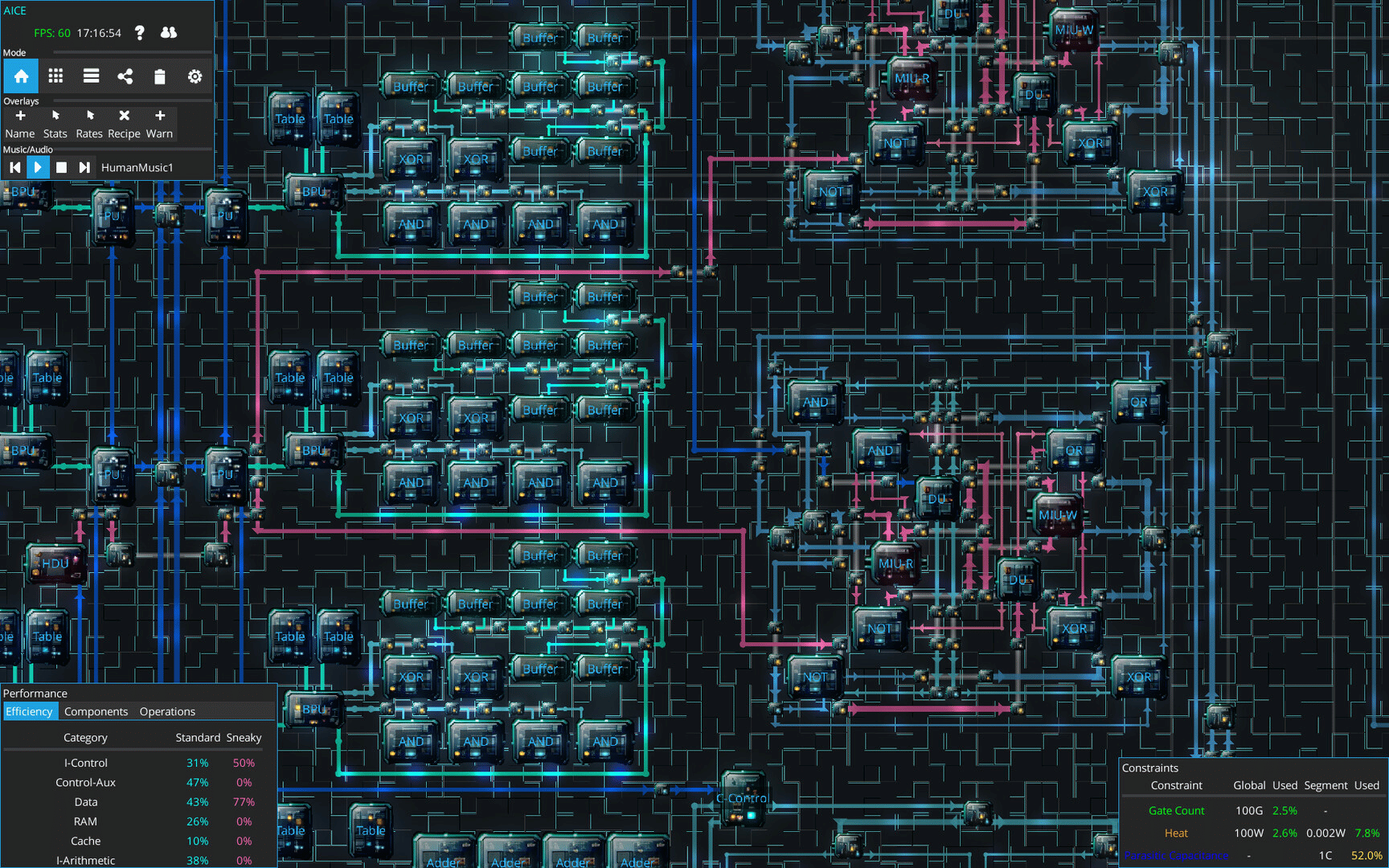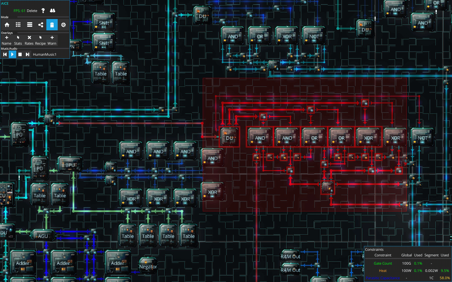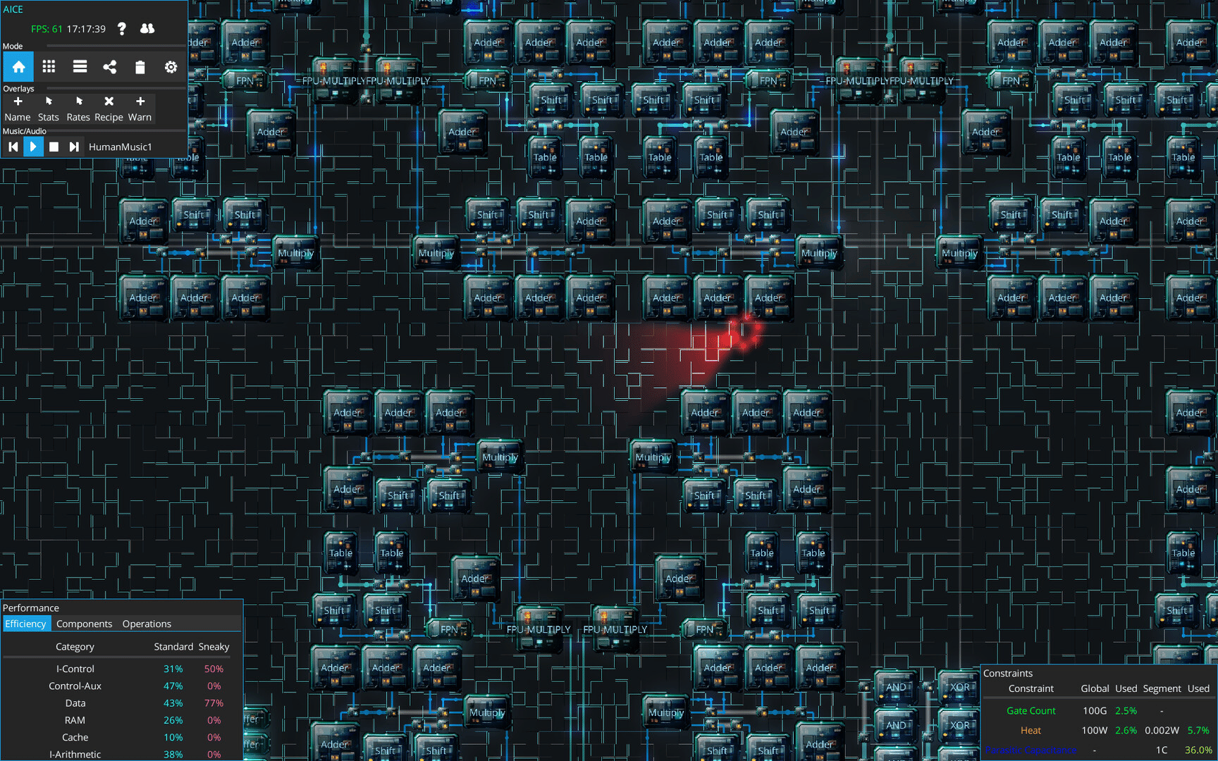 Aice is a game about designing increasingly complicated processor chips, all while hiding sneaky extra capacity from the 'supervising' humans. Carefully design and layout your chips so that all the extras you've added are well hidden in amongst the regular components!