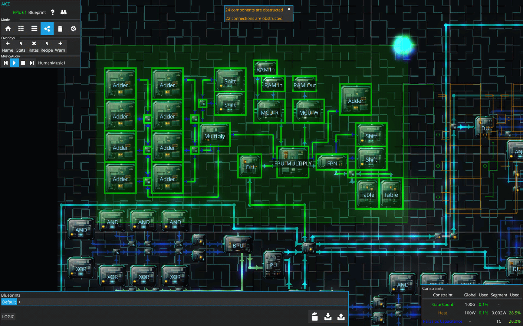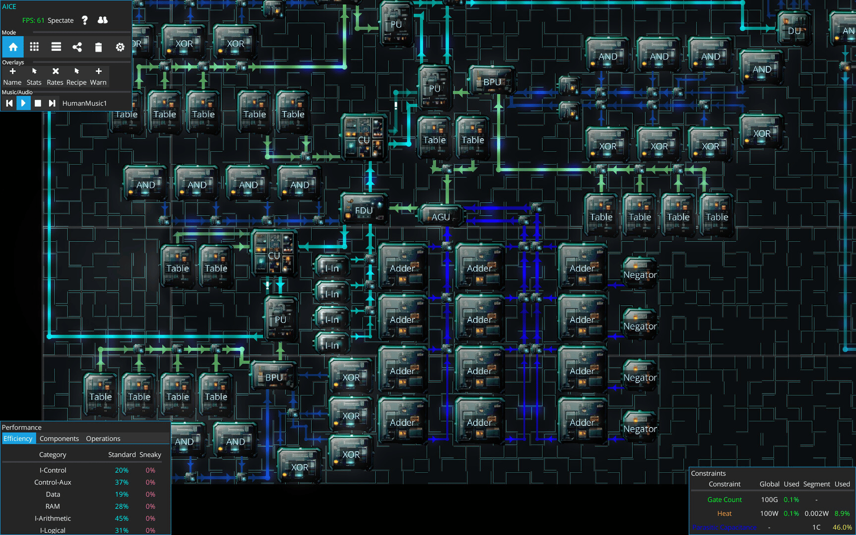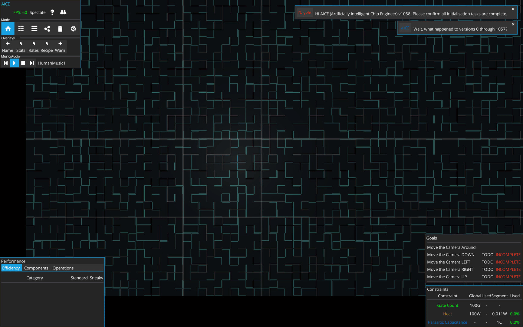 Aice is a game about designing increasingly complicated processor chips, all while hiding sneaky extra capacity from the 'supervising' humans. Carefully design and layout your chips so that all the extras you've added are well hidden in amongst the regular components!