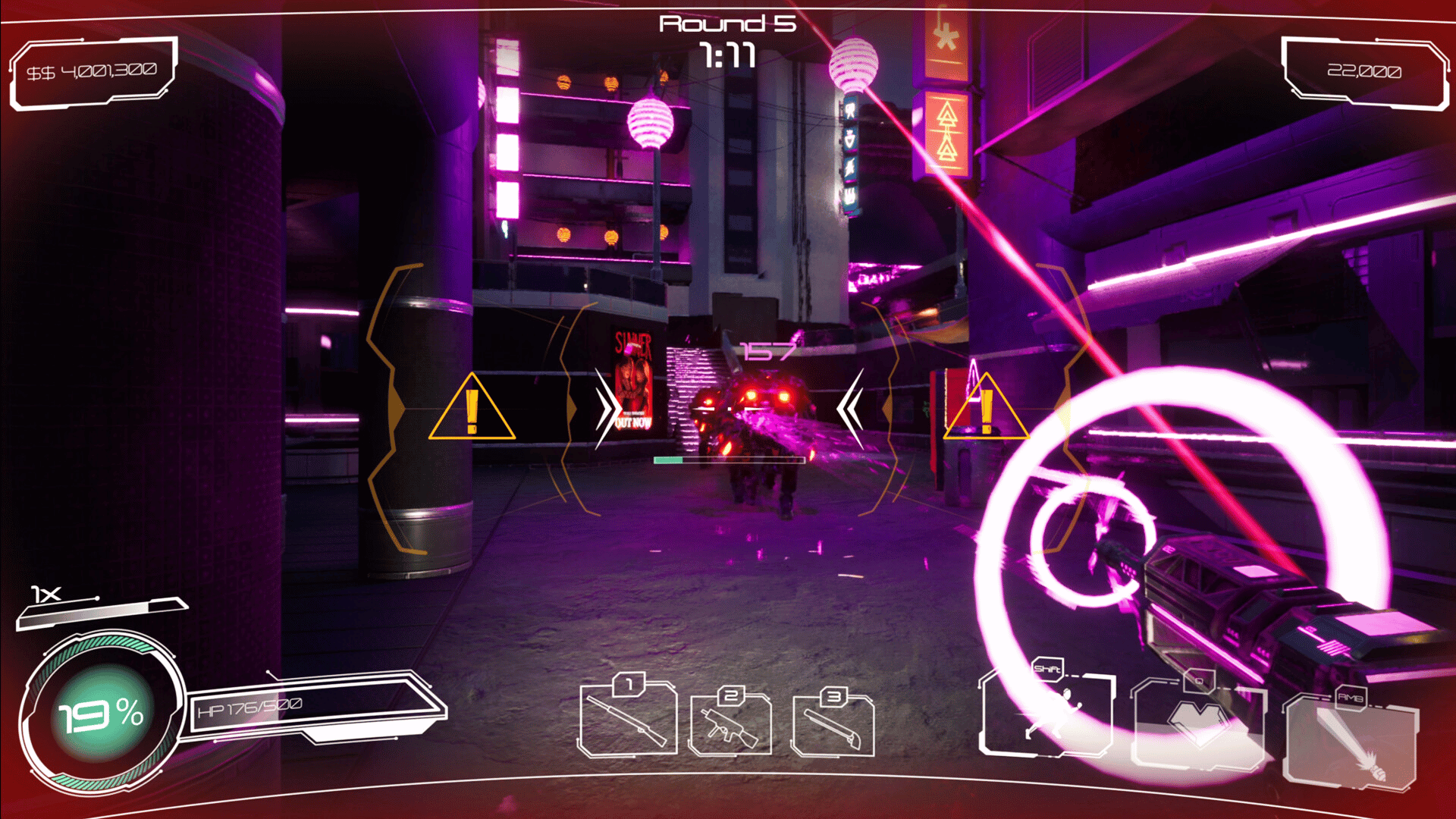 Sound of Survival is a rhythm ego shooter where you have to shoot on the beat. Fight in a cyberpunk City against hordes of robots while you groove to the music. Shoot and hit on the beat to get stronger!