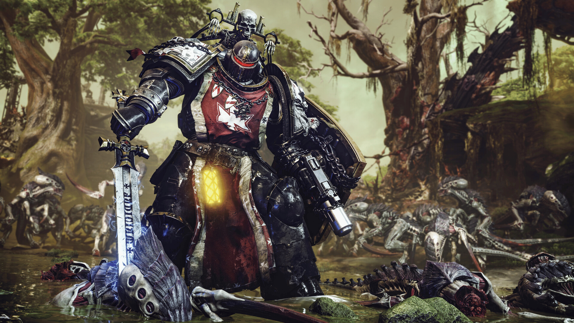 Forever crusade against the enemies of Humanity with the Black Templars Champion Pack, granting you a unique full-body Power Armour skin for the Bulwark class and a Power Sword skin featuring the colours and iconography of the Black Templars. The cosmetics in this Pack can only be equipped in the game’s Operations and Eternal War modes.