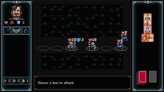 Last Card Dungeon is a roguelike autobattler where your soul is trapped across a cursed deck. Explore a forsaken world. Collect powerful equipment. Tap and discard cards to battle enemies, survive events, and hunt the hooded figure who imprisoned your spirit...before your deck runs dry.