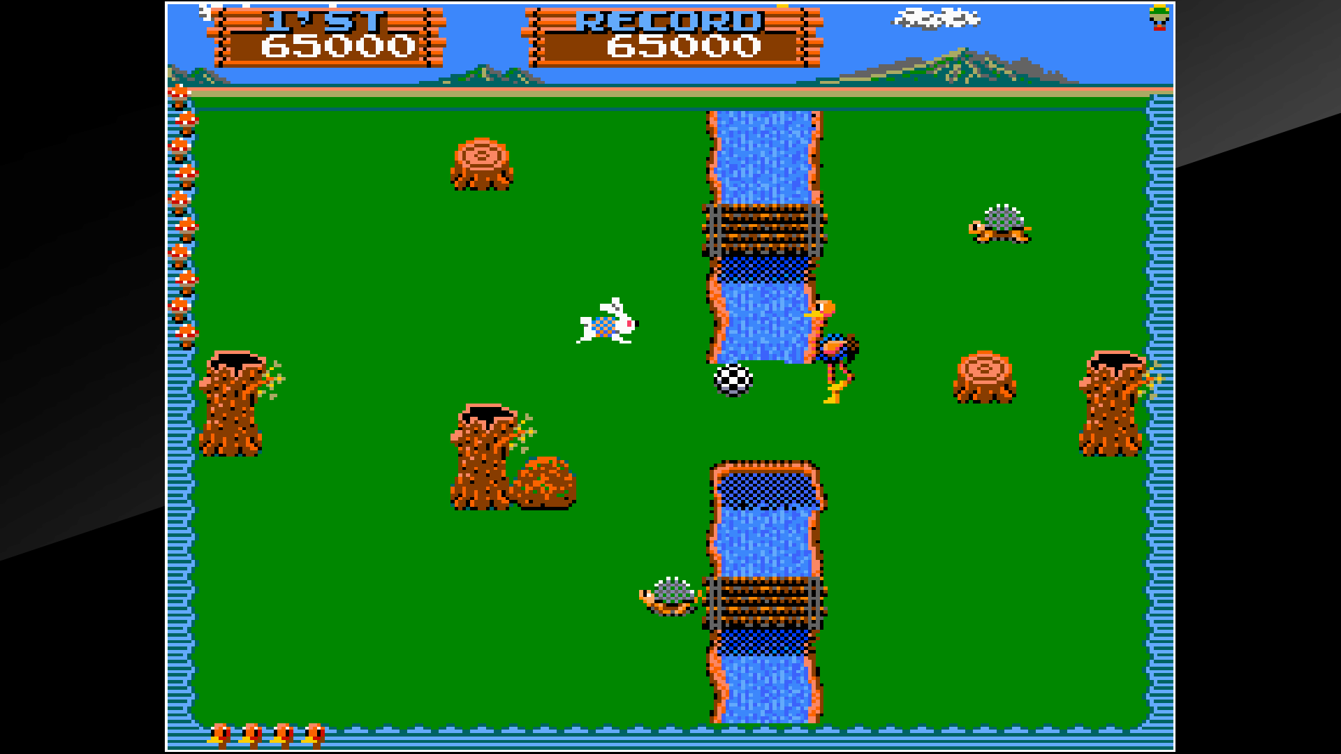 "DACHOLER" is an action game released by Nichibutsu in 1983. Kick a turtle with your powerful legs and take down enemy animals! Watch out for the kappa jumping out of the river! This title also includes a slightly modified version, KICK BOY, so you can enjoy the differences in visuals and gameplay.