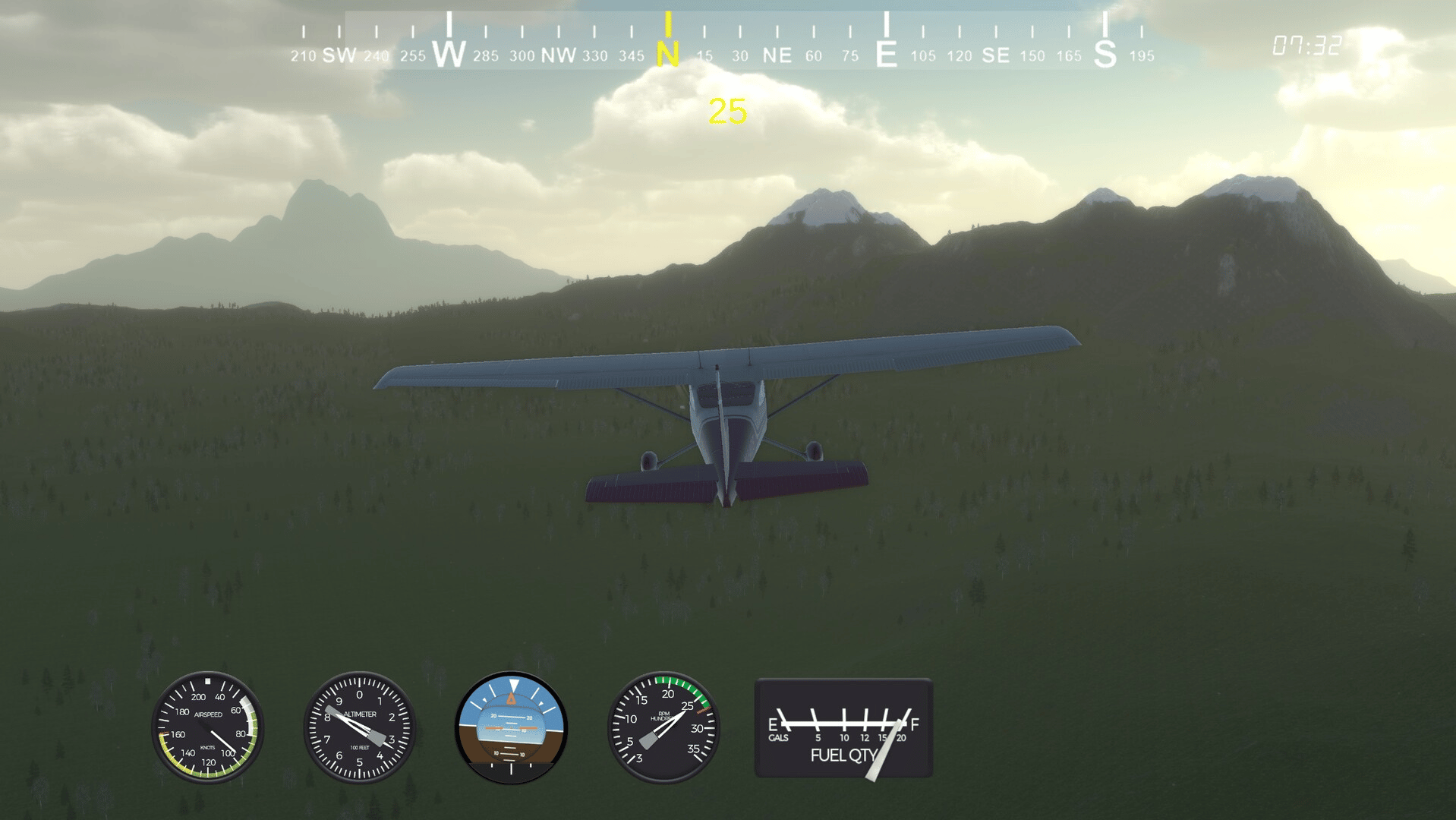 You are a licensed pilot and contract employee at Goldal Town Airport. You earn money delivering mail to remote homesteads in a mountainous area. You can rent a plane and fly wherever you want, explore the area and hunt animals. You can buy all the planes, and when you have saved enough money you can buy a stunt plane.