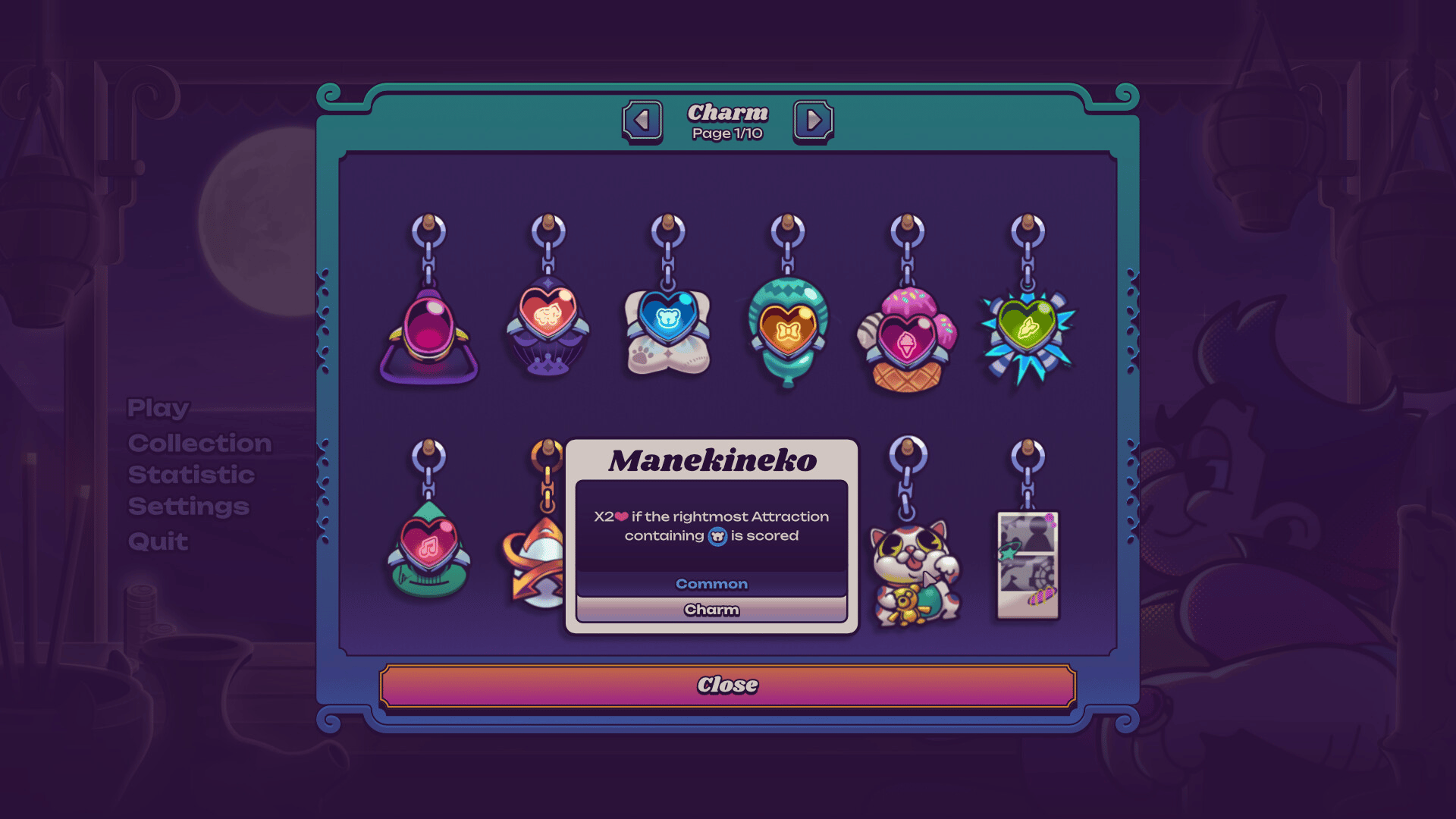 A strategic spatial set-collection roguelike featuring Balatro-inspired power-up management. Under the flamboyant Uncle Luxman, build the ultimate Moonlit Market while using exotic charms to trigger game-changing combos and adapting to the crowd’s ever-changing trends!