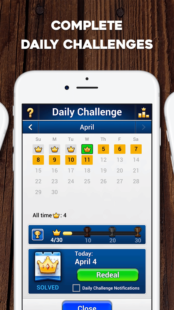 TriPeaks Solitaire is a variation of Golf and Black Hole, and is also known as Tri Towers, Three Peaks, and Triple Peaks. Our TriPeaks Solitaire game gives you unlimited and unrestricted gameplay, so you can play to your heart’s content…no more waiting for the next TriPeaks level to unlock! We bring you the best TriPeaks Solitaire game in the App Store with unique animations, clean design, and simple gameplay. Download today! It’s quick and easy to learn: tap a card that is one value higher or lower than your active card to move it off the table. Solve deals by clearing all the cards off your table!