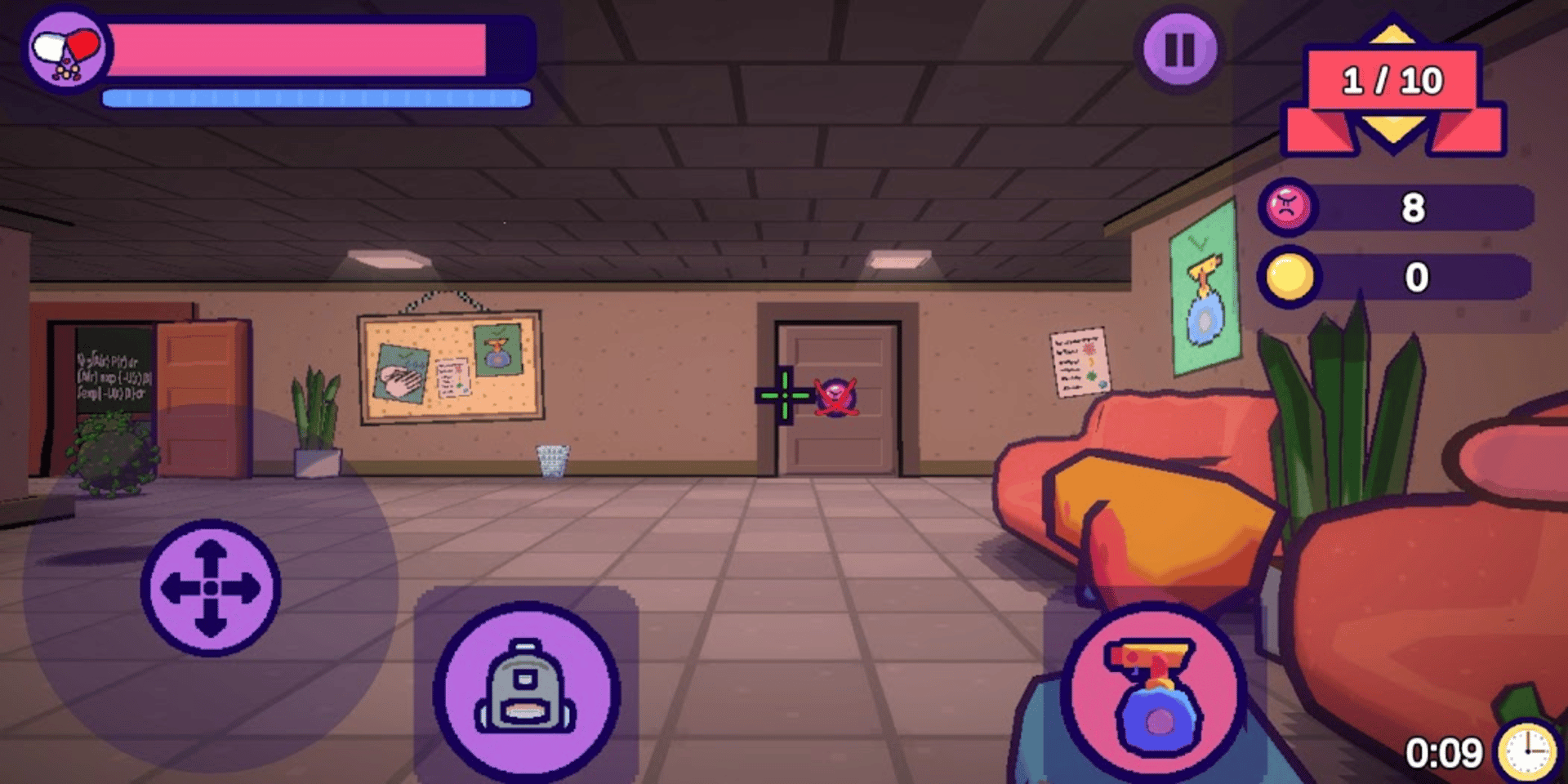 Contagious Mayhem is an educational first person shooter where you fight waves of various microbes by spraying them with disinfectants.
