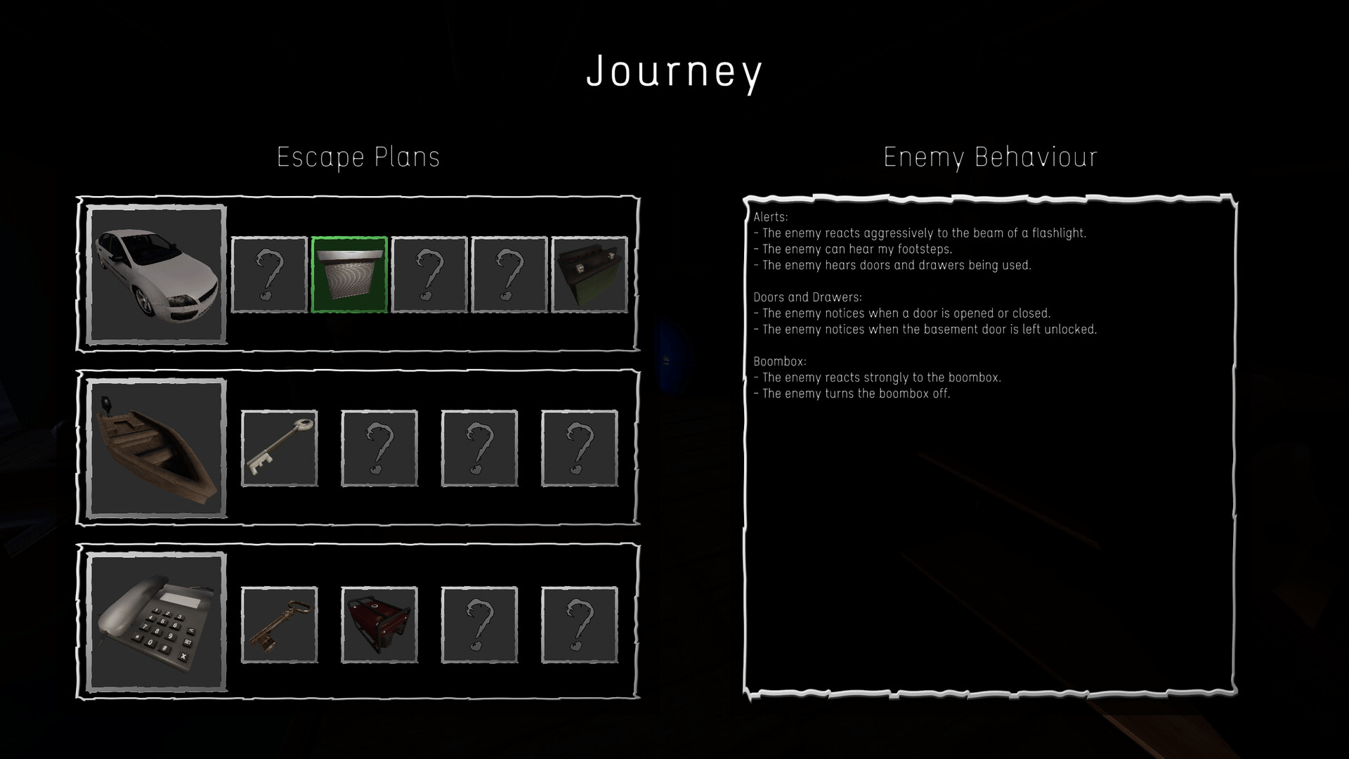“He is Outside” is a survival horror game where you must escape a relentless killer. There are three possible escape routes, each requiring specific items that are randomly placed. Each time the killer catches you, you wake up as if it were a nightmare, only for the terror to start again.